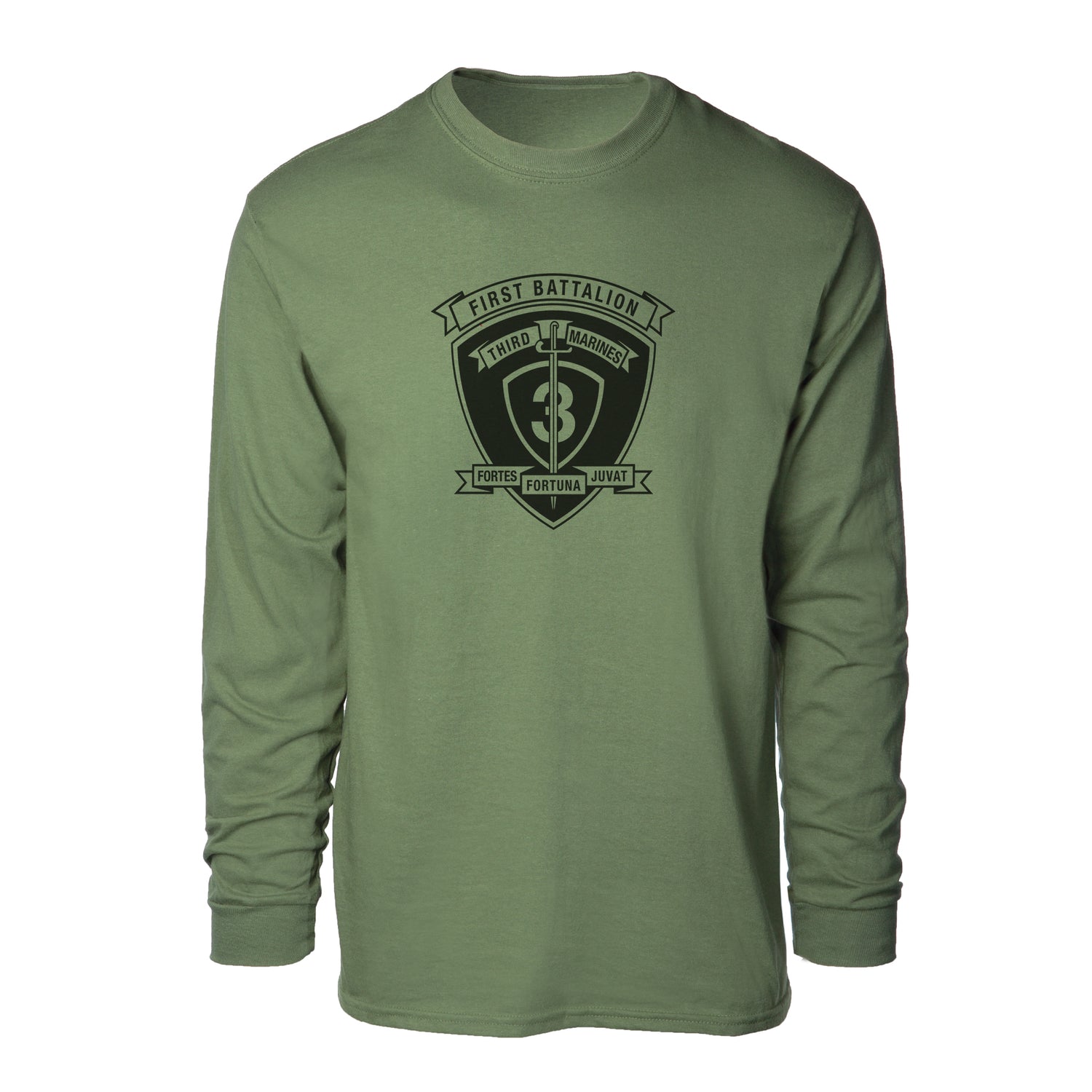 Your USMC collection won't truly be complete until you add this great Long Sleeve T-shirt. This t-shirt features the 1st Battalion 3rd Marines patch and can be personalized with your location and year.
