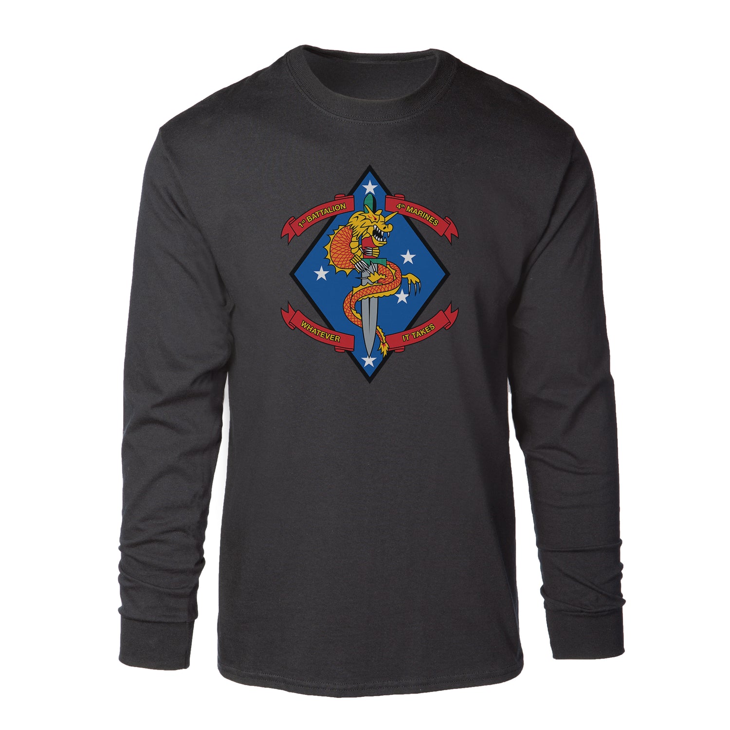 Your USMC collection won't truly be complete until you add this great Long Sleeve T-shirt. This t-shirt features the 1st Battalion 4th Marines patch and can be personalized with your location and year.