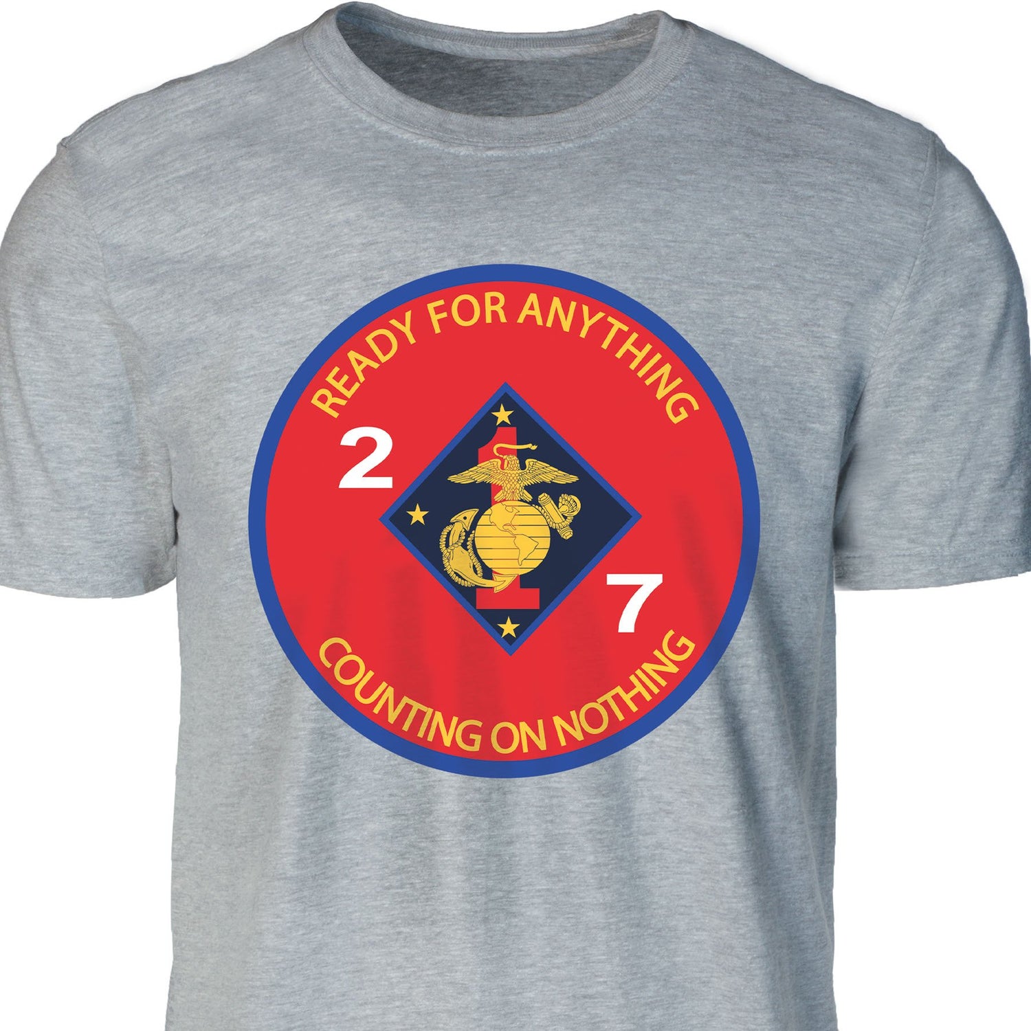 Your USMC collection won't truly be complete until you add this great T-shirt. This t-shirt features the 2nd Battalion 7th Marines patch that can be personalized with your location and year.