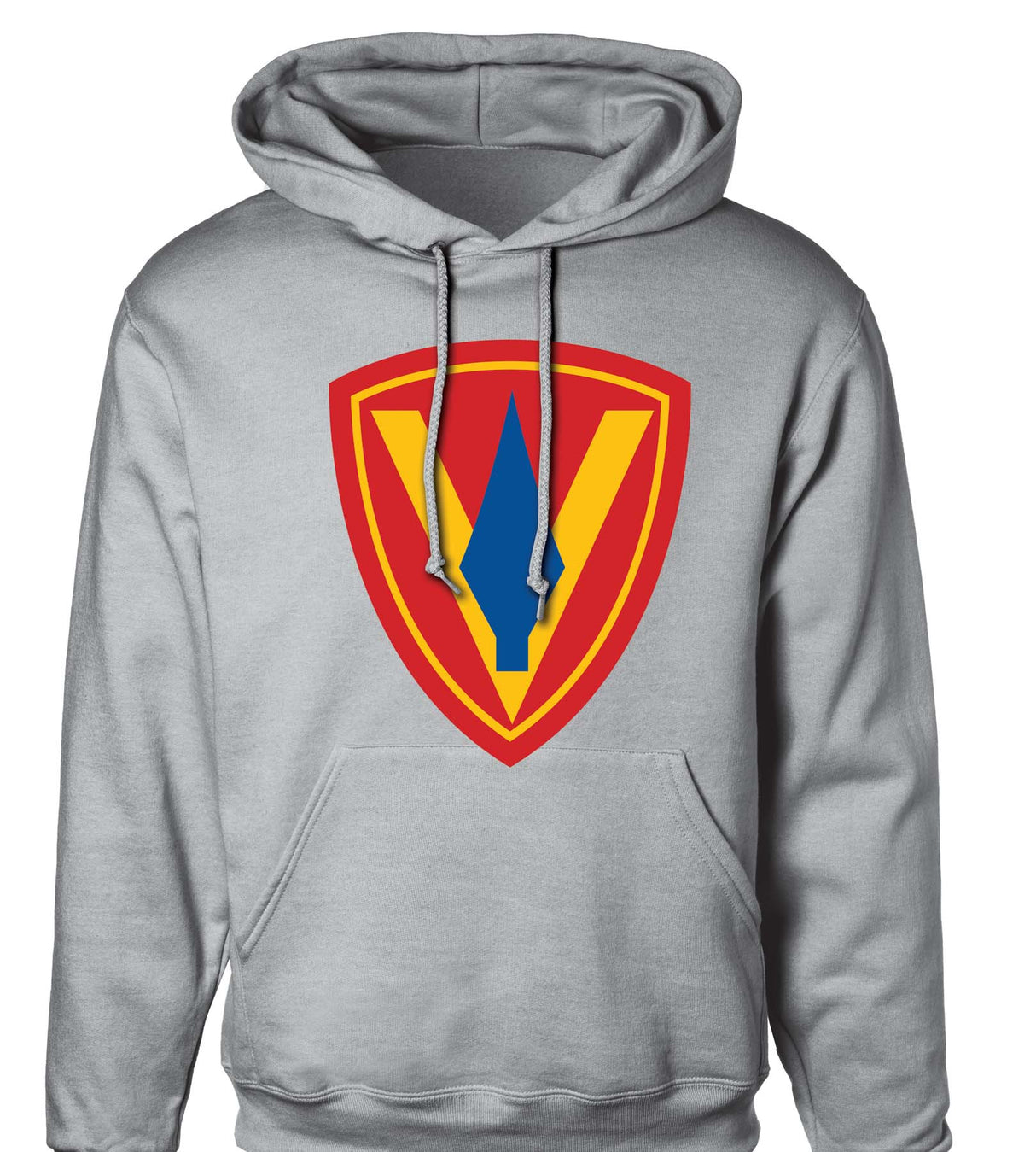 Continue to showcase your pride and dedication with this hoodie featuring the 5th Marine Division patch. This hoodie can be personalized to also include your location and year.