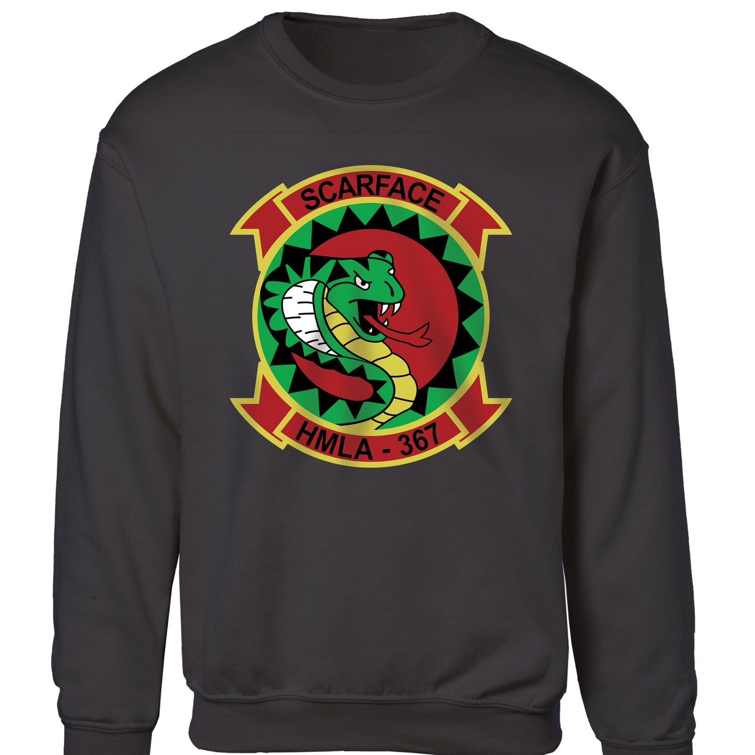 Continue to showcase your pride and dedication with this sweatshirt featuring the HMLA-367 Scarface patch. This sweatshirt can be personalized to include your location and year.