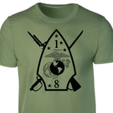Your USMC collection won't truly be complete until you add this great T-shirt. This t-shirt features the 1st Battalion 8th MARINES patch that can be personalized with your location and year.