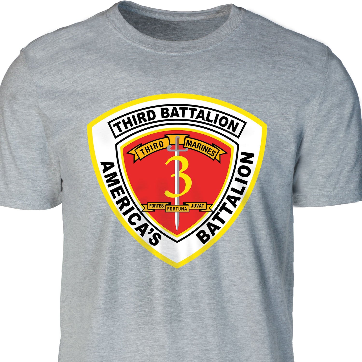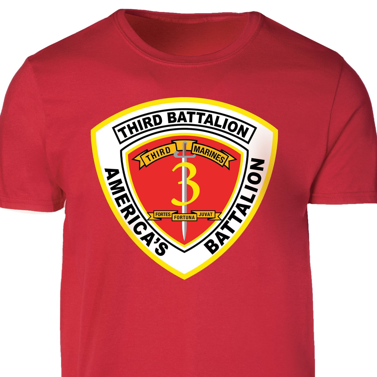 Your USMC collection won't truly be complete until you add this great T-shirt. This t-shirt features the 3rd Battalion 3rd Marines patch that can be personalized with your location and year.