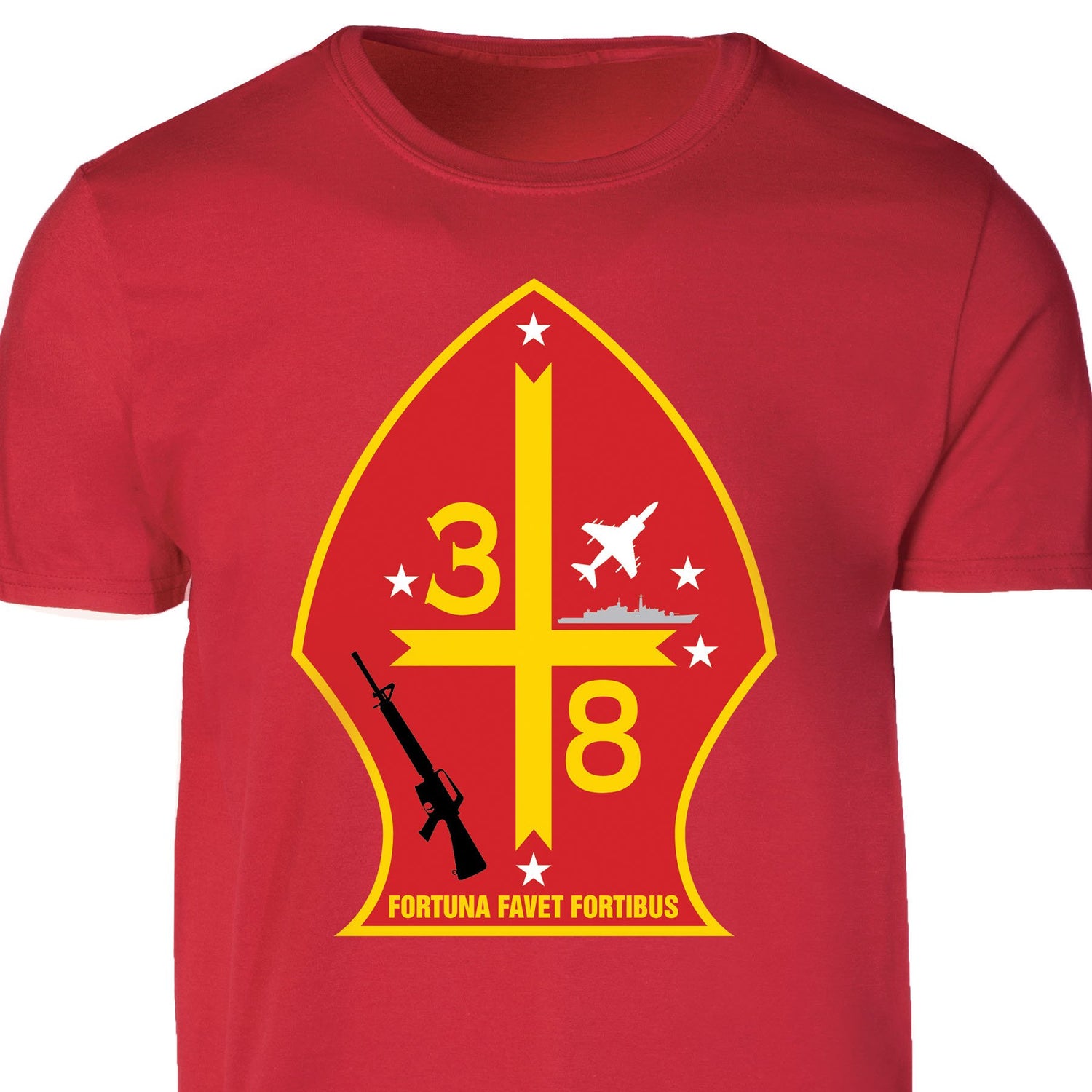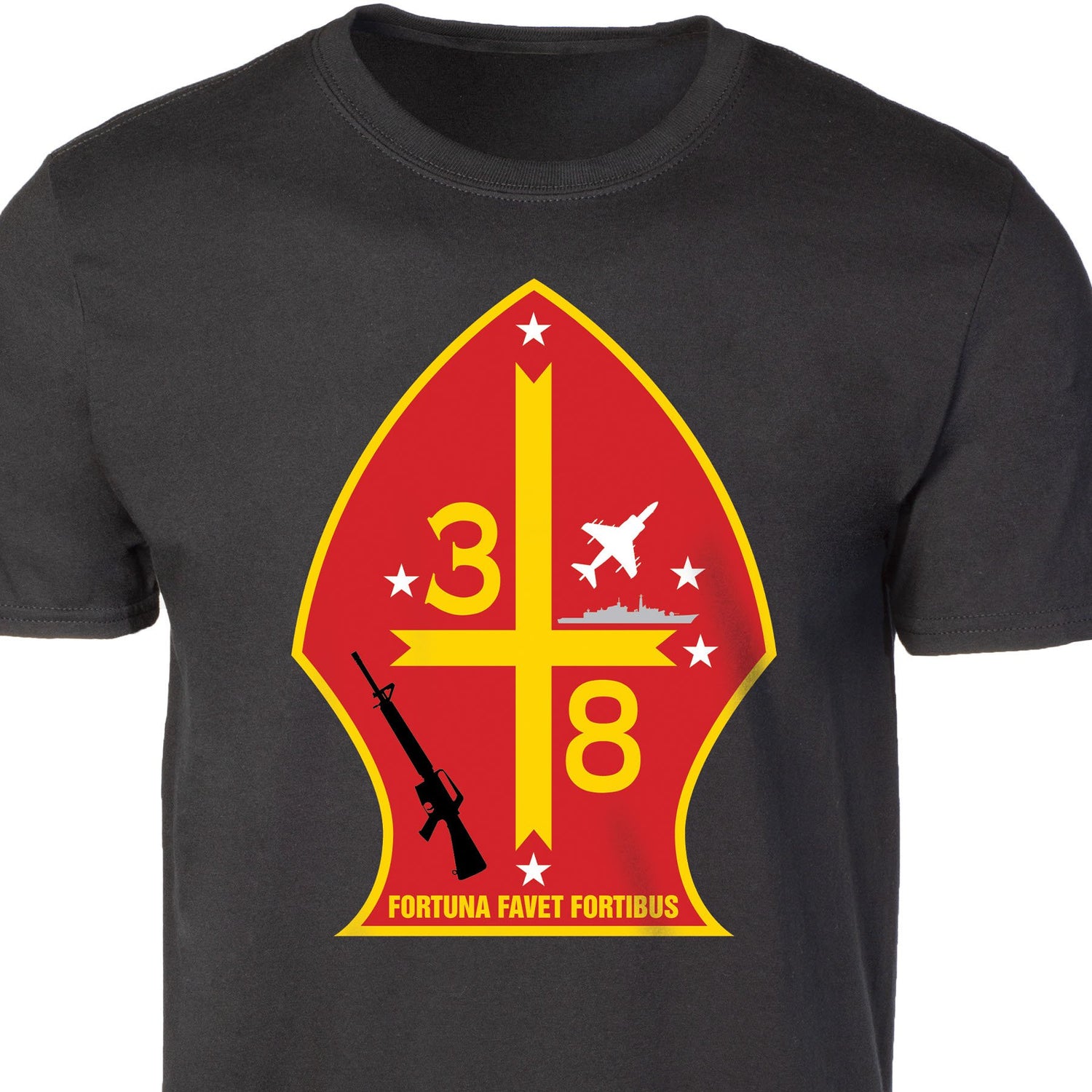 Your USMC collection won't truly be complete until you add this great T-shirt. This t-shirt features the 3rd Battalion 8th Marines patch that can be personalized with your location and year.