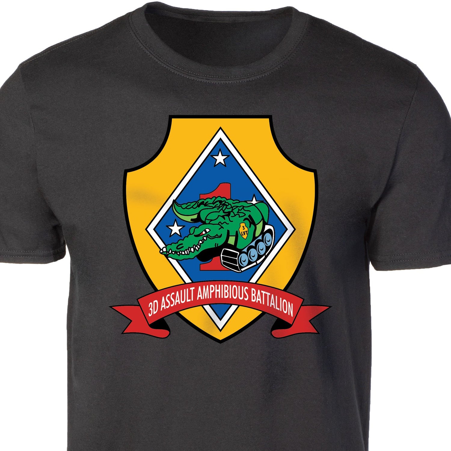 Your USMC collection won't truly be complete until you add this great T-shirt. This t-shirt features the 3rd Amphibious Assault Battalion patch that can be personalized with your location and year.