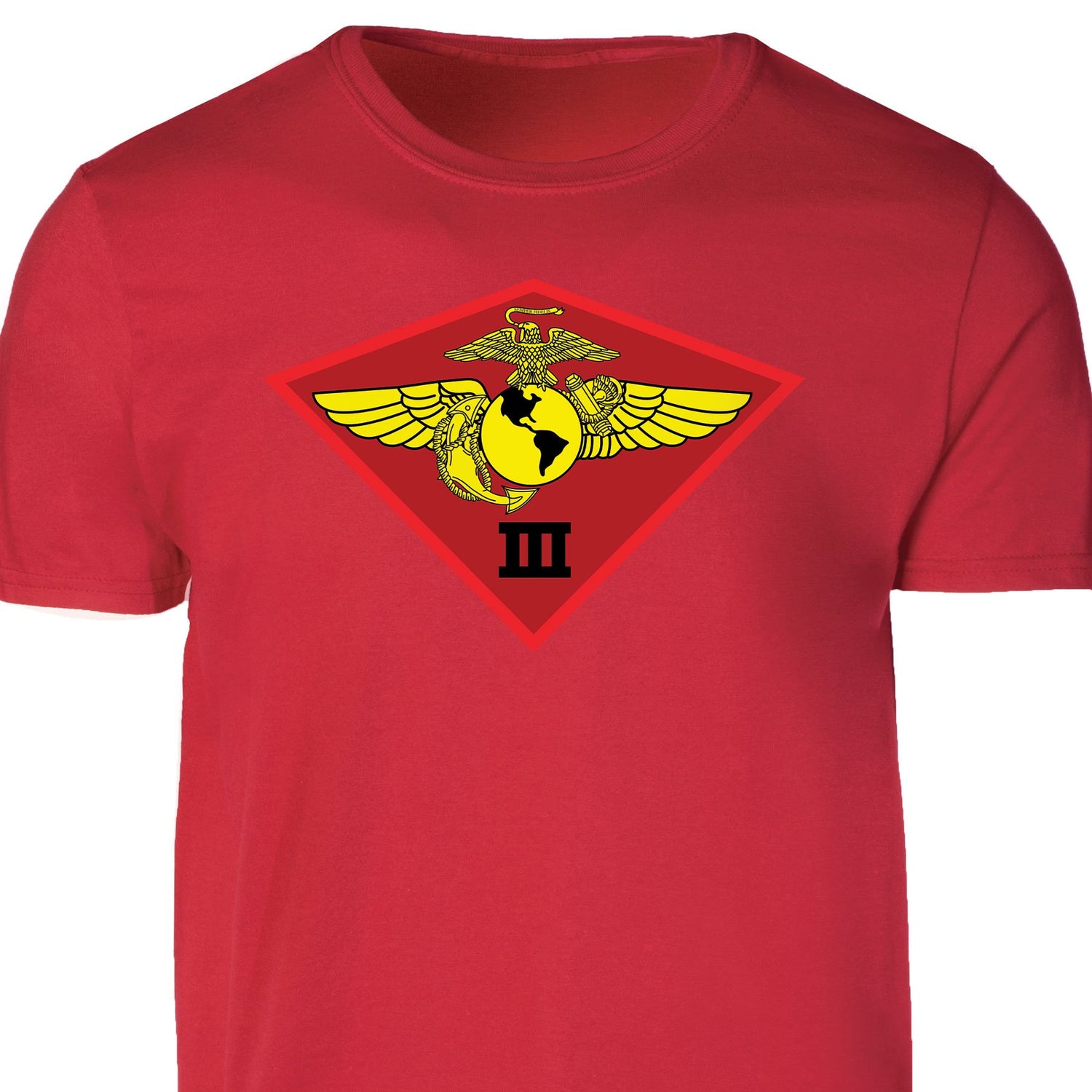 Your USMC collection won't truly be complete until you add this great T-shirt. This t-shirt features the 3rd Marine Air Wing patch that can be personalized with your location and year.