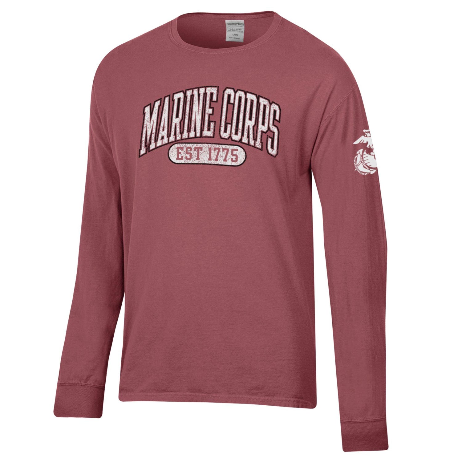Honor the few and the proud—order your ComfortWash Marine Corps Est 1775 Long Sleeve T-Shirt today.
