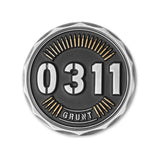 Honor the heart of the Marine Corps infantry with the USMC 0311 Grunt Challenge Coin. This 1¾-inch zinc coin features "0311" and "Grunt" on one side, proudly representing the infantry MOS. The reverse side displays "United States Marine Corps" and a bold skull with crossed rifles, symbolizing strength, grit, and determination. Crafted with precision and durability, this challenge coin is a meaningful keepsake for Marines, veterans, and collectors. Whether carried as a token of pride or displayed as part of a collection, this coin pays tribute to the dedication and sacrifices of the Marine Corps infantry.