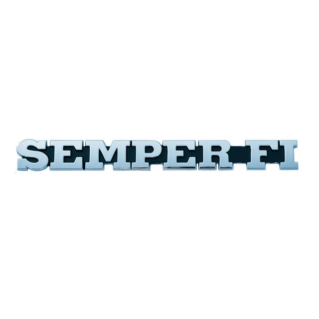 Show some pride with this Semper Fi auto emblem. Emblem measures approximately 8" wide x 1" tall, and includes paint safe adhesive for attaching to your car.