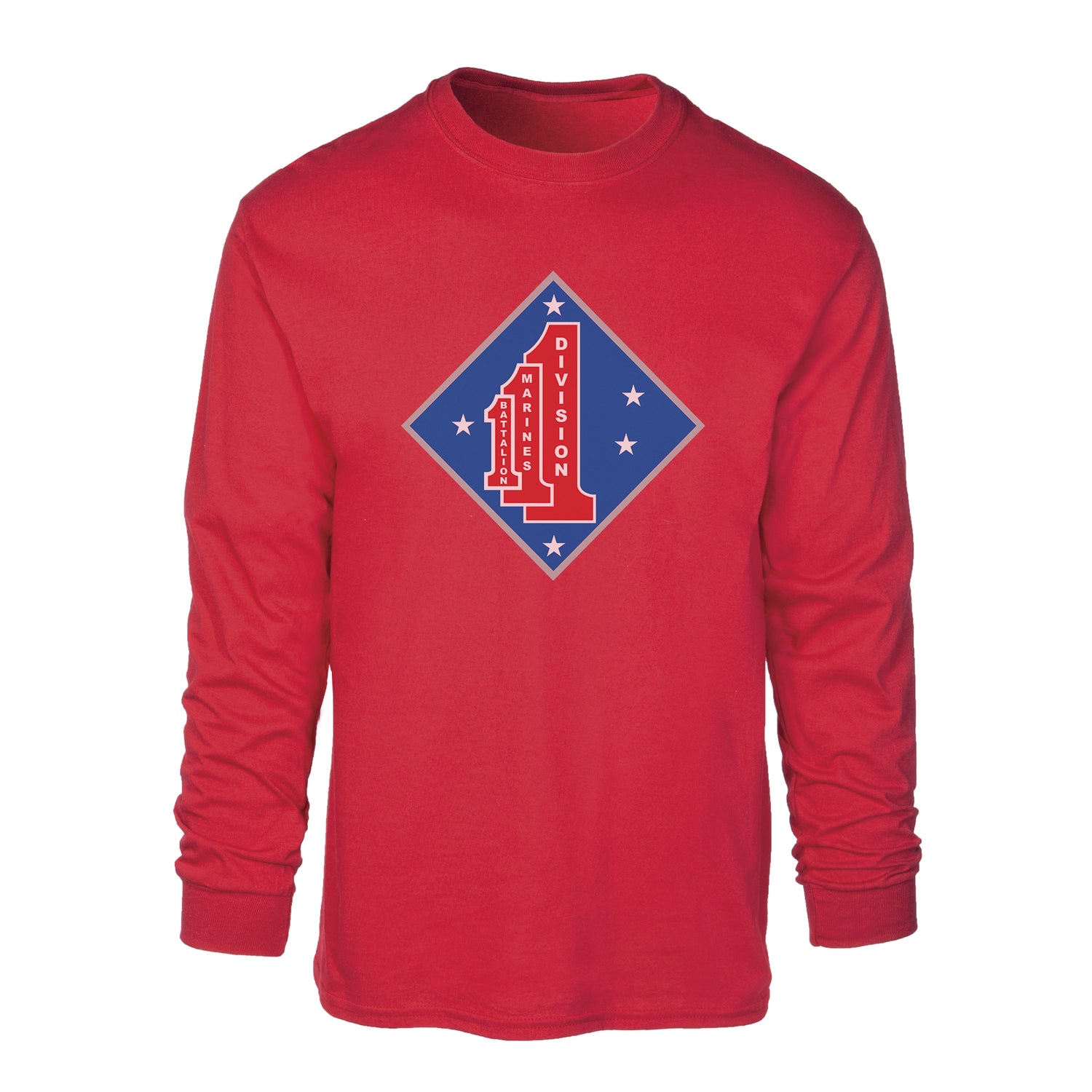 Your USMC collection won't truly be complete until you add this great Long Sleeve T-shirt. This t-shirt features the 1st Battalion 1st Marines patch and can be personalized with your location and year.