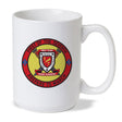 White coffee cup featuring the 1/7 First of the Seventh patch art.