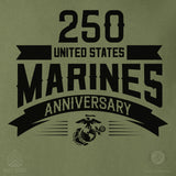 Celebrate 250 years of Marine Corps history with the USMC 250th Anniversary Ribbon Long Sleeve Shirt. This commemorative design honors the Corps’ proud legacy, featuring "250," "United States Marine Anniversary," and the iconic Eagle, Globe, and Anchor emblem. Boldly printed across the chest, this design pays tribute to the courage, commitment, and history of the United States Marine Corps.