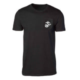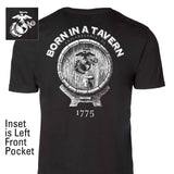 Celebrate the storied roots of the Marine Corps with the "Born in a Tavern" Back With Front Pocket T-Shirt. Constructed from premium 100% cotton, this tee promises both comfort and durability. The back showcases a distinctive beer barrel, richly emblazoned with the iconic Eagle, Globe, and Anchor, reminding all of the legendary beginnings of the Marine Corps at Tun Tavern. Complementing the back design, the front chest pocket features an Eagle, Globe, and Anchor, adding an extra touch of pride. This shirt perfectly fuses historical reverence with modern-day style, making it a must-have for every Marine enthusiast.