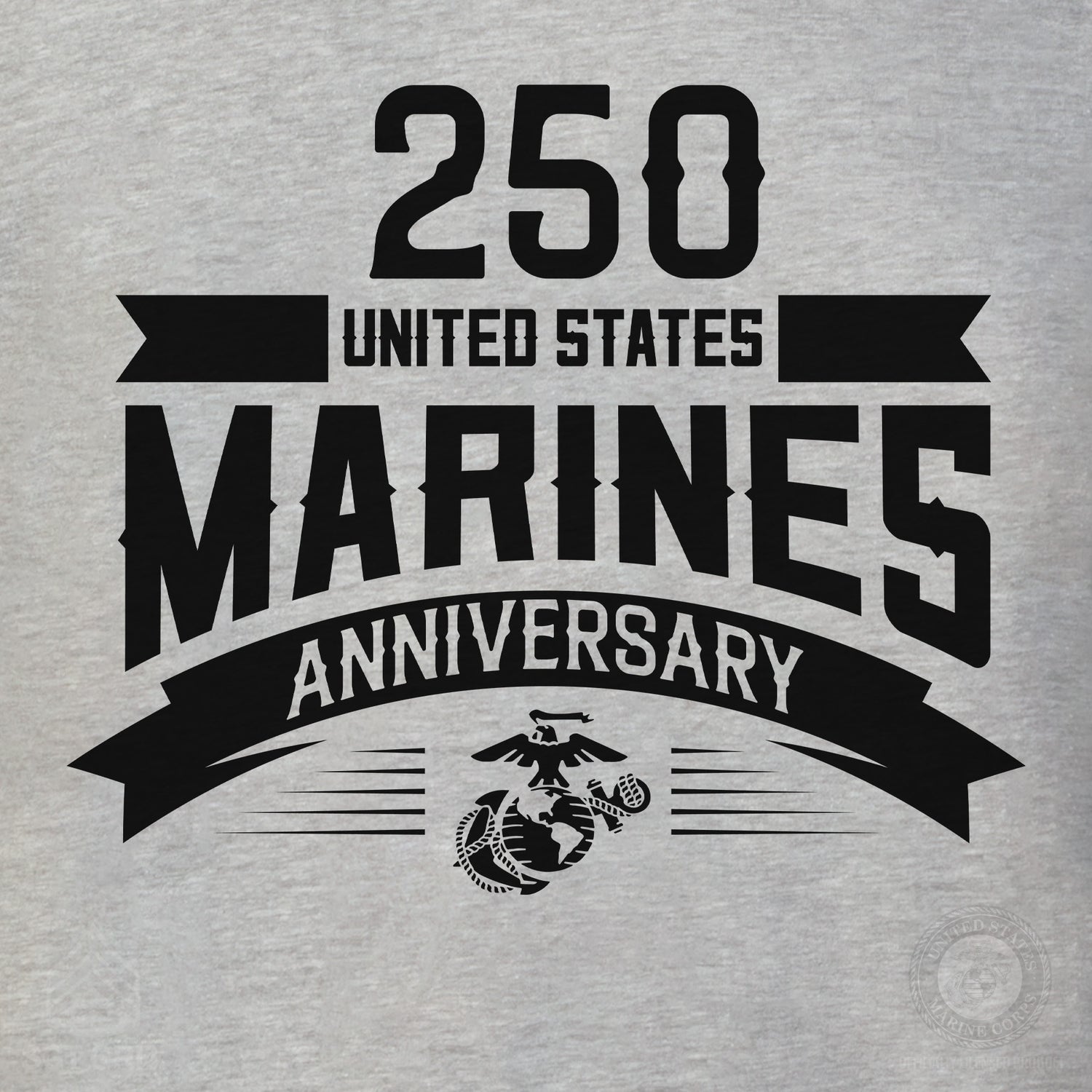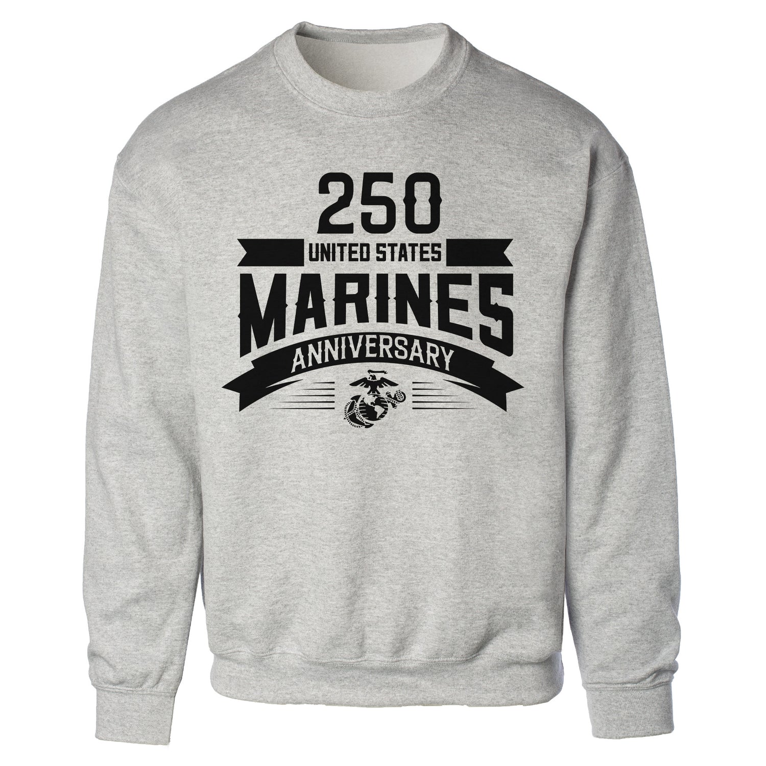 Celebrate 250 years of Marine Corps history with the USMC 250th Anniversary Ribbon Sweatshirt. This commemorative design honors the Corps’ proud legacy, featuring "250," "United States Marine Anniversary," and the iconic Eagle, Globe, and Anchor emblem. Boldly printed across the chest, this design pays tribute to the courage, commitment, and history of the United States Marine Corps. Made from 50% cotton/50% polyester, this sweatshirt offers a soft, comfortable fit with a full front chest printed design.