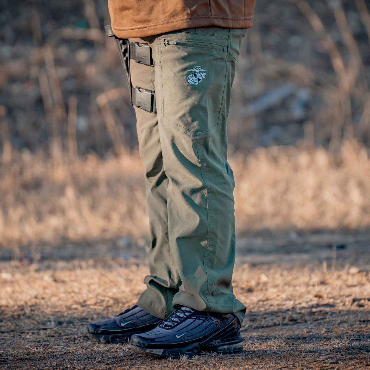 The perfect low-profile, on-duty/off-duty pants are specifically designed for everyday carry and excellent on-the-job performance. These nylon-blend stretch oxford pants are treated with water-resistant DWR and include features like a hidden stretch waist, crotch gusset for mobility, and a tailored straight fit. Jeans-style front and back pockets, zippered low-profile anti-snag cargo pockets, and drop in cell phone pocket complete the ultimate combination of style, flexibility, and durability.