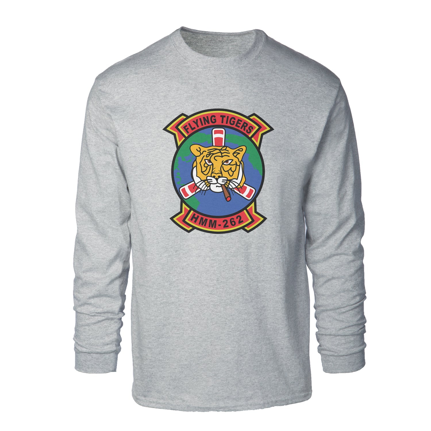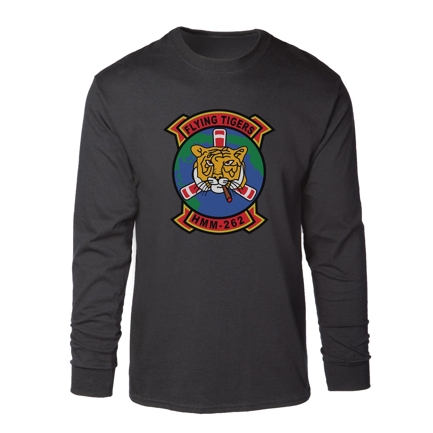 Your USMC collection won't truly be complete until you add this great Long Sleeve T-shirt. This t-shirt features the HMM-262 Flying Tigers patch and can be personalized with your location and year.