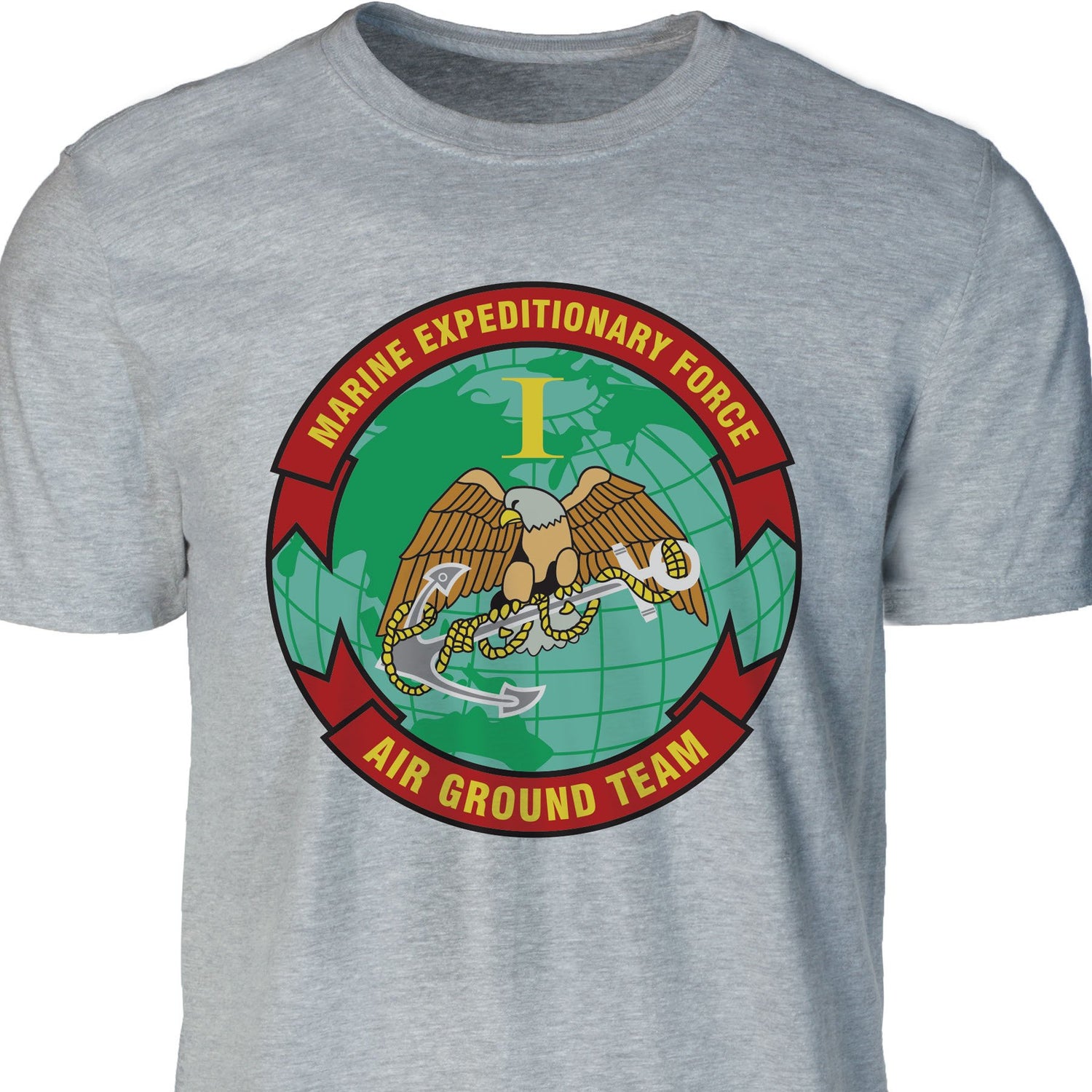 Your USMC collection won't truly be complete until you add this great T-shirt. This t-shirt features the 1st MEF - Air Ground Team Marines patch that can be personalized with your location and year.