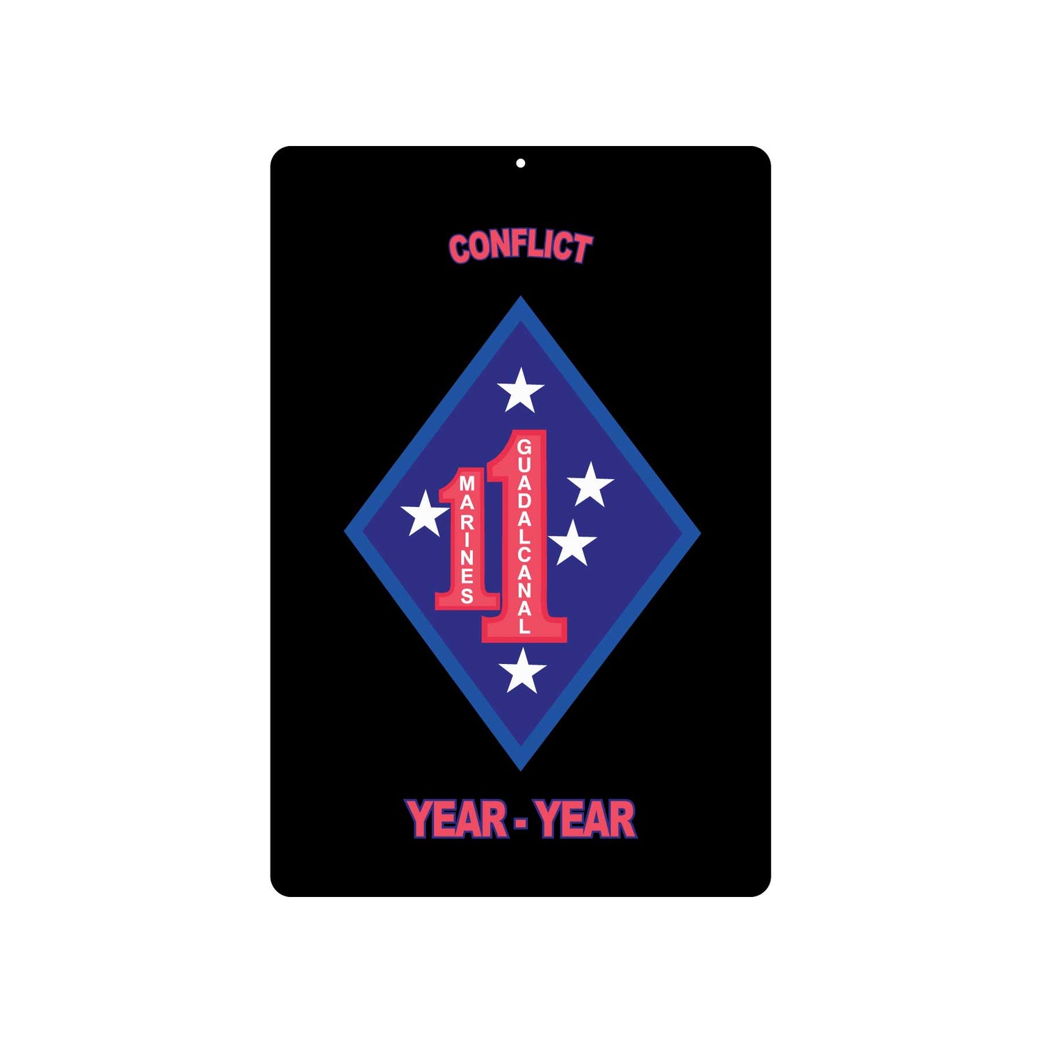 This is the ideal gift for a student of military history or a descendant of a U.S. Marine who fought in the Pacific Theater at Guadalcanal during World War II. It's a must-have addition to any collector of signs, patches and decals of the 1st, the Marines' oldest and most decorated division. You can personalize this metal Marine Corps sign with a name or regiment location. The aluminum sign is 12 inches by 18 inches in size.