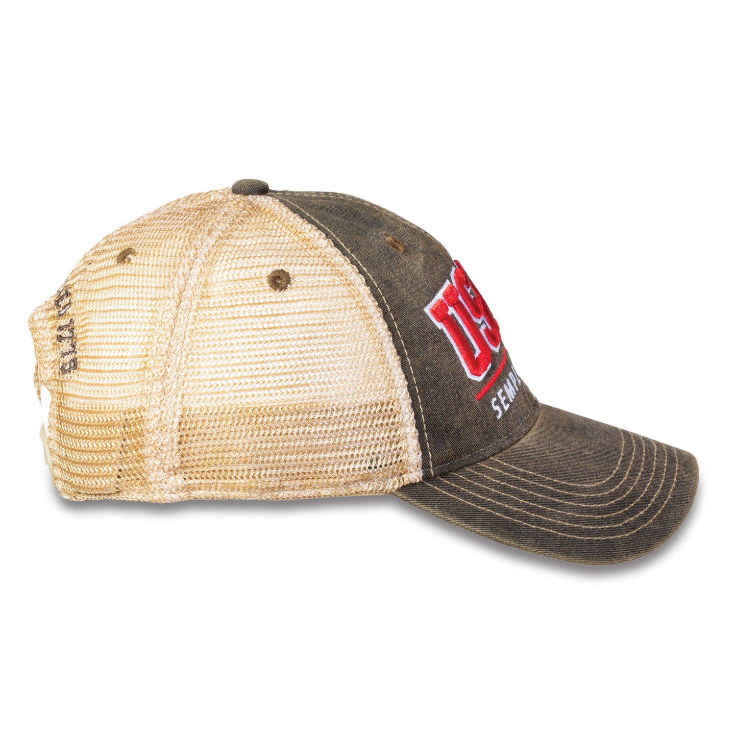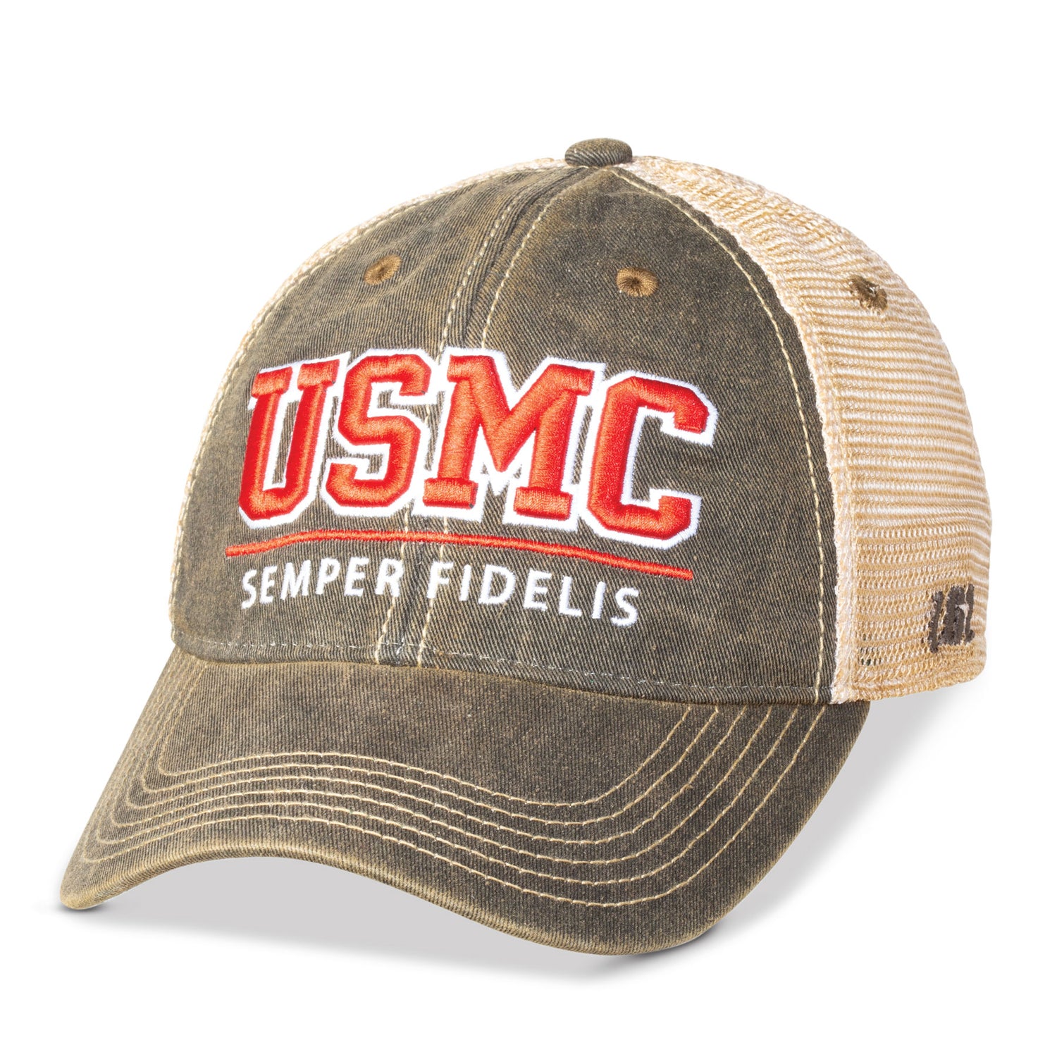 Wear your Marine Corps pride anywhere you go. The front of this cap proudly displays “USMC Semper Fidelis” in red and white, while the mesh back will keep you cool on the hottest of days. “Established 1775” embroidered on the back arch over the closure. The manufacturer's name, 7.62, is embroidered on the left side.