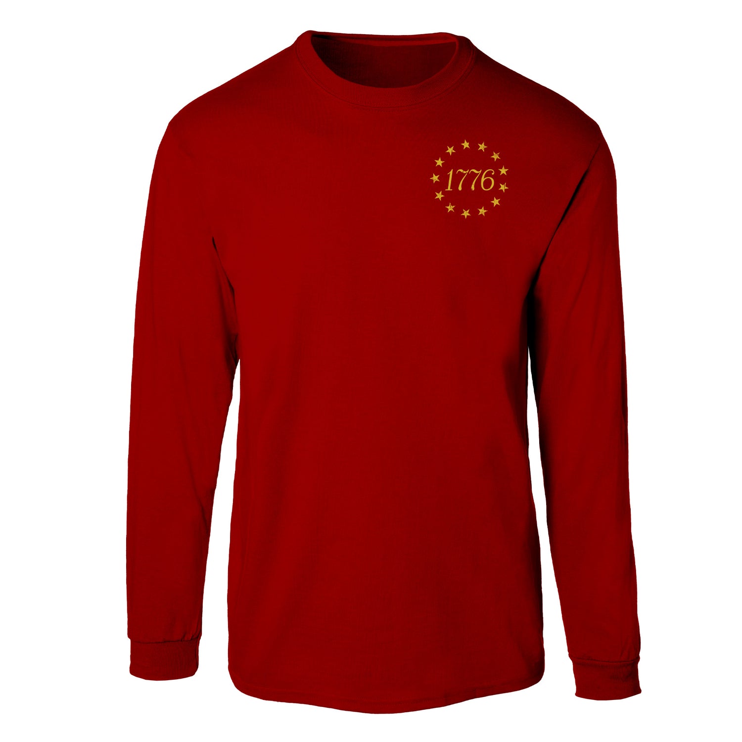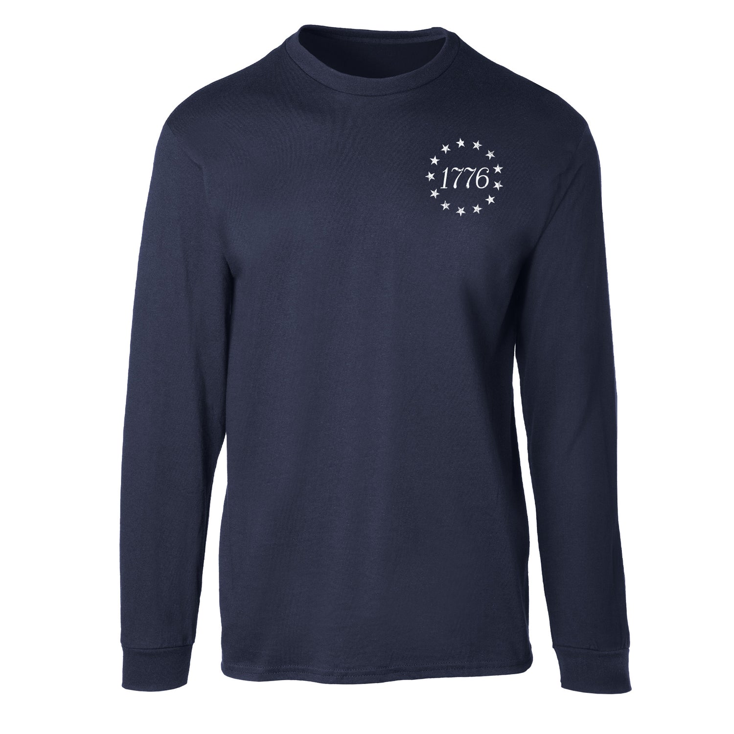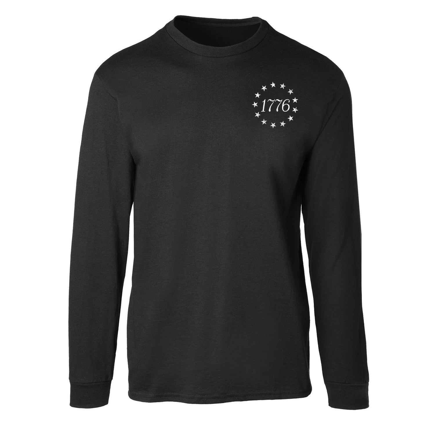 The 1776 Betsy Ross Flag Long Sleeve T-Shirt - Back Design is a bold tribute to the founding of the United States of America. This patriotic design features the iconic 13 stars of the Betsy Ross flag encircling “1776,” creating a powerful visual that honors American history and the birth of a nation. Timeless and symbolic, it’s the perfect way to celebrate freedom and 250 years of this great nation.