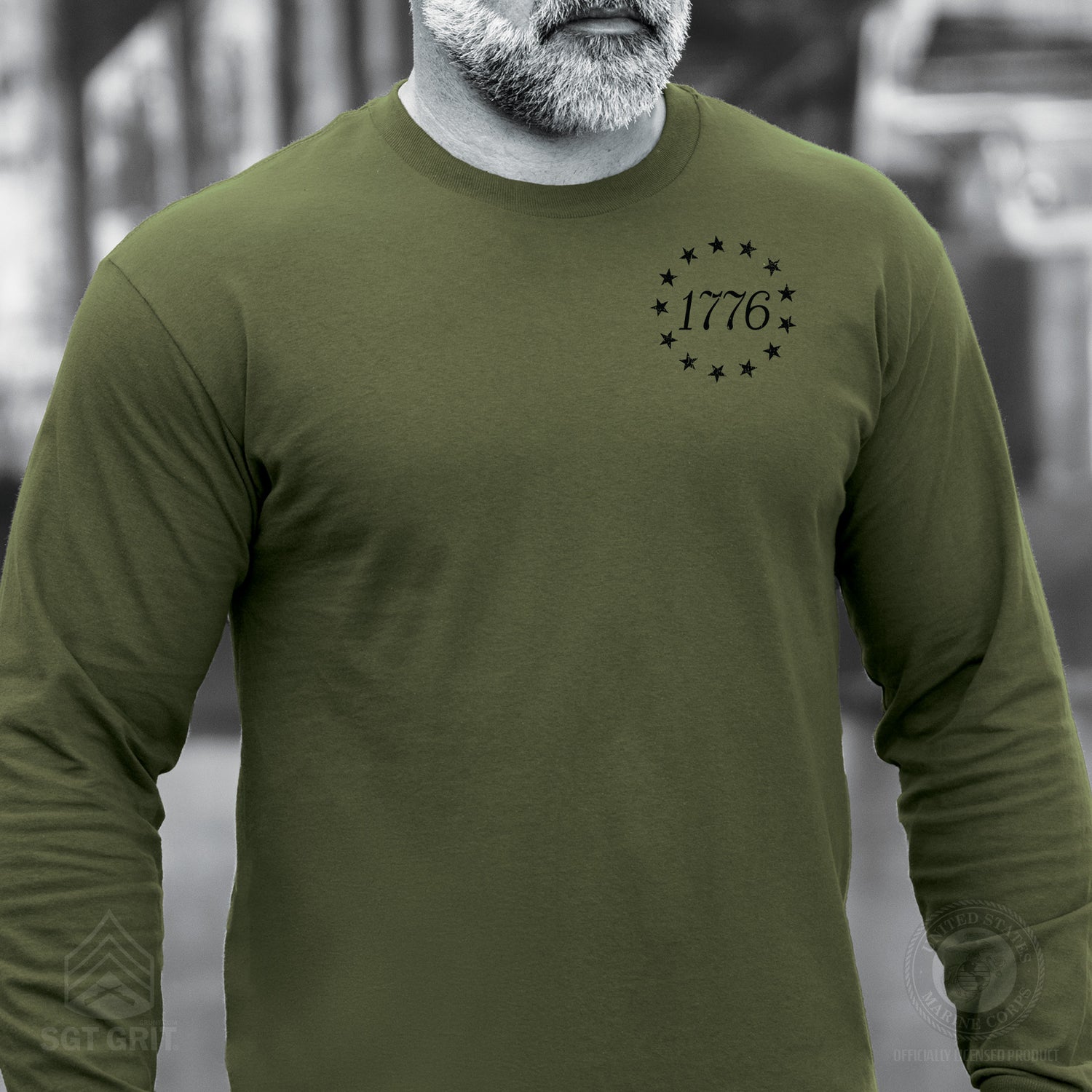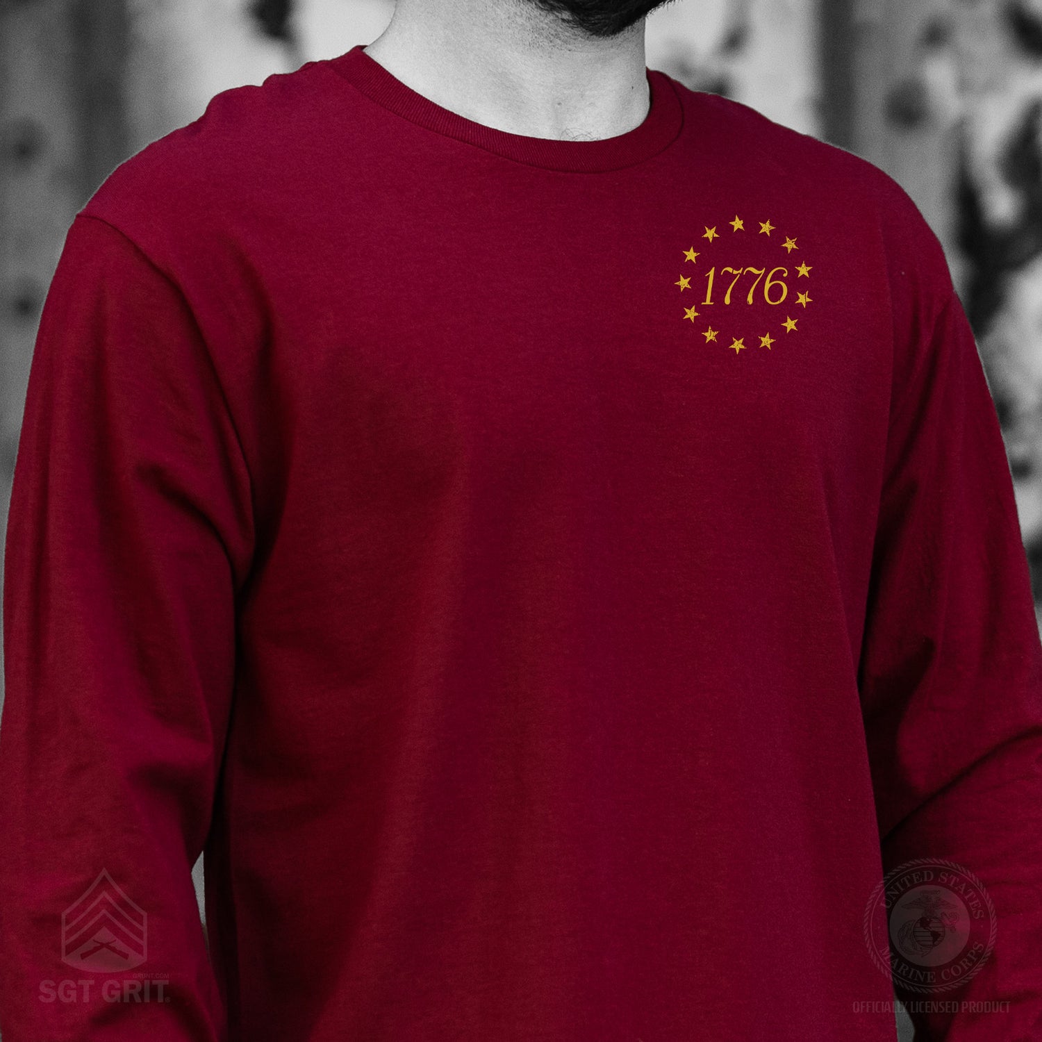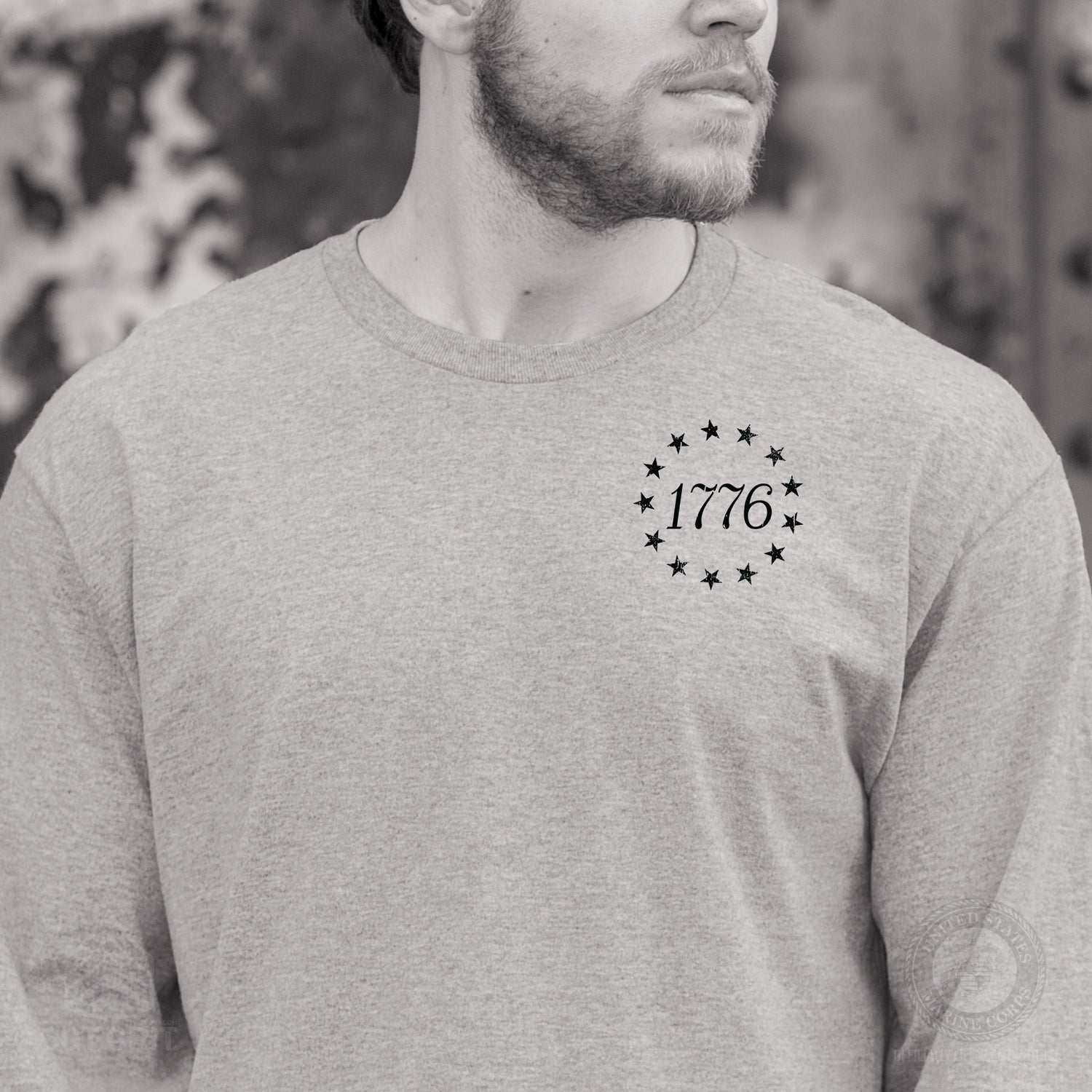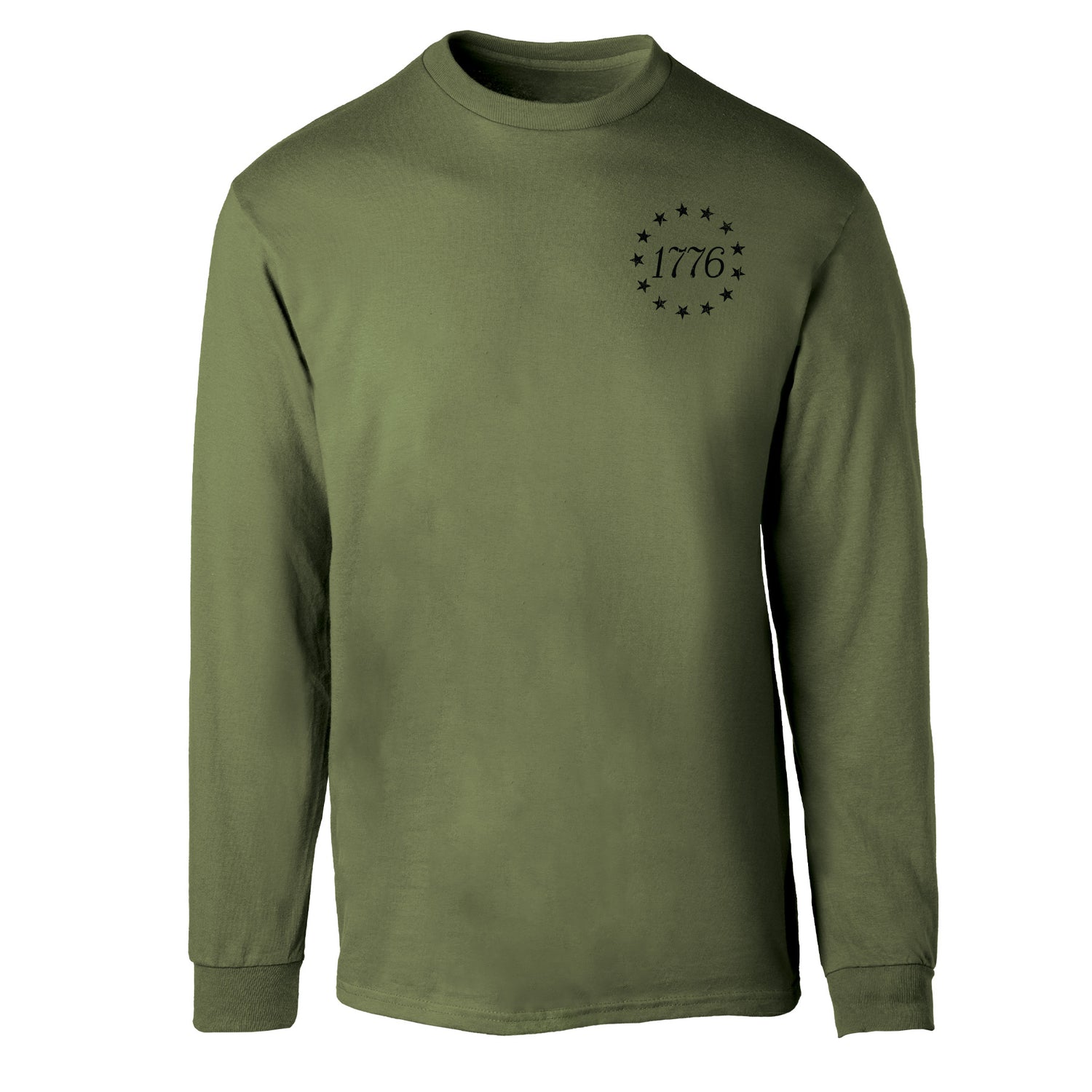 The 1776 Betsy Ross Flag Long Sleeve T-Shirt - Back Design is a bold tribute to the founding of the United States of America. This patriotic design features the iconic 13 stars of the Betsy Ross flag encircling “1776,” creating a powerful visual that honors American history and the birth of a nation. Timeless and symbolic, it’s the perfect way to celebrate freedom and 250 years of this great nation.