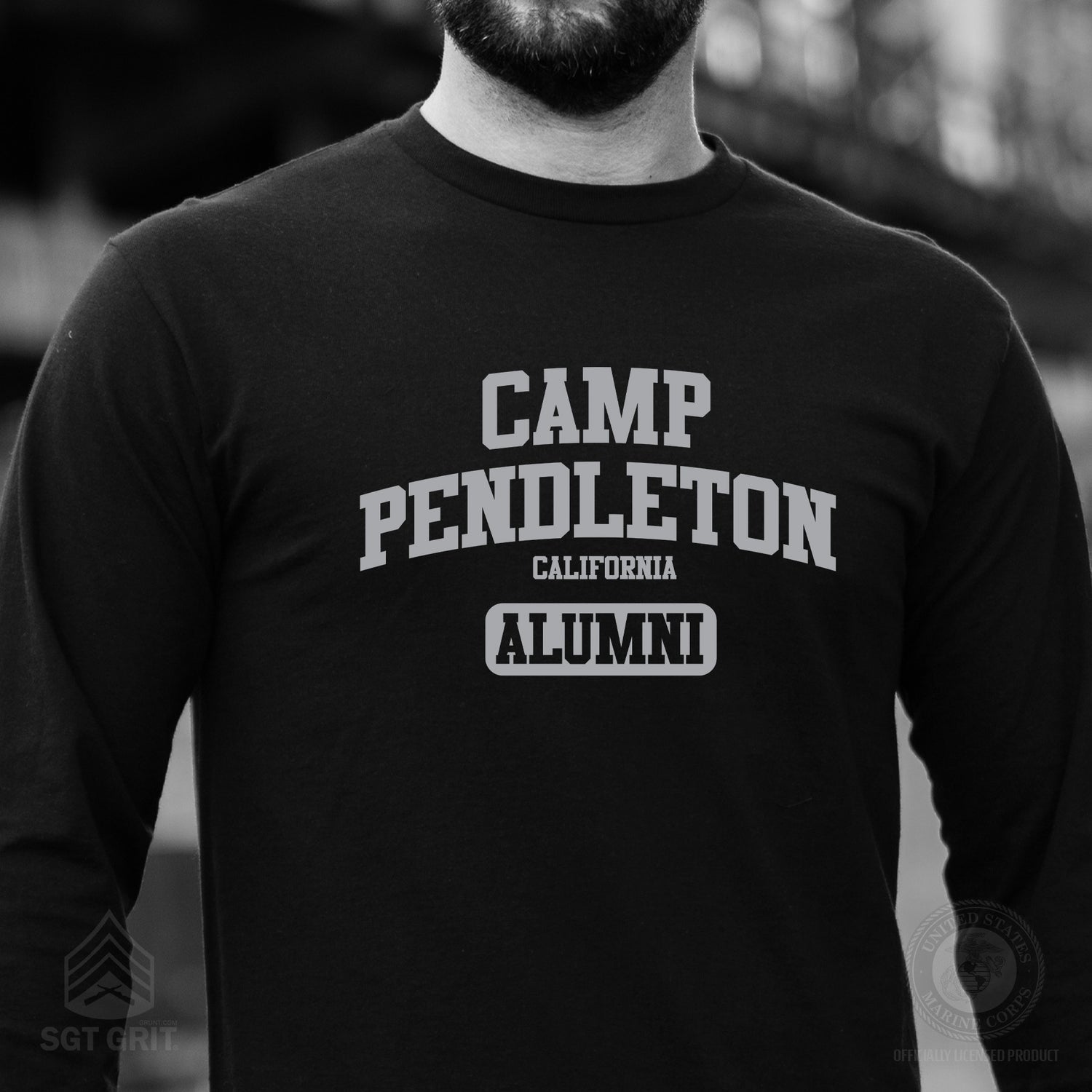 Personalize yours today and represent your Marine base with pride—order the Marine Corps Base Collegiate Alumni Long Sleeve T-Shirt now.