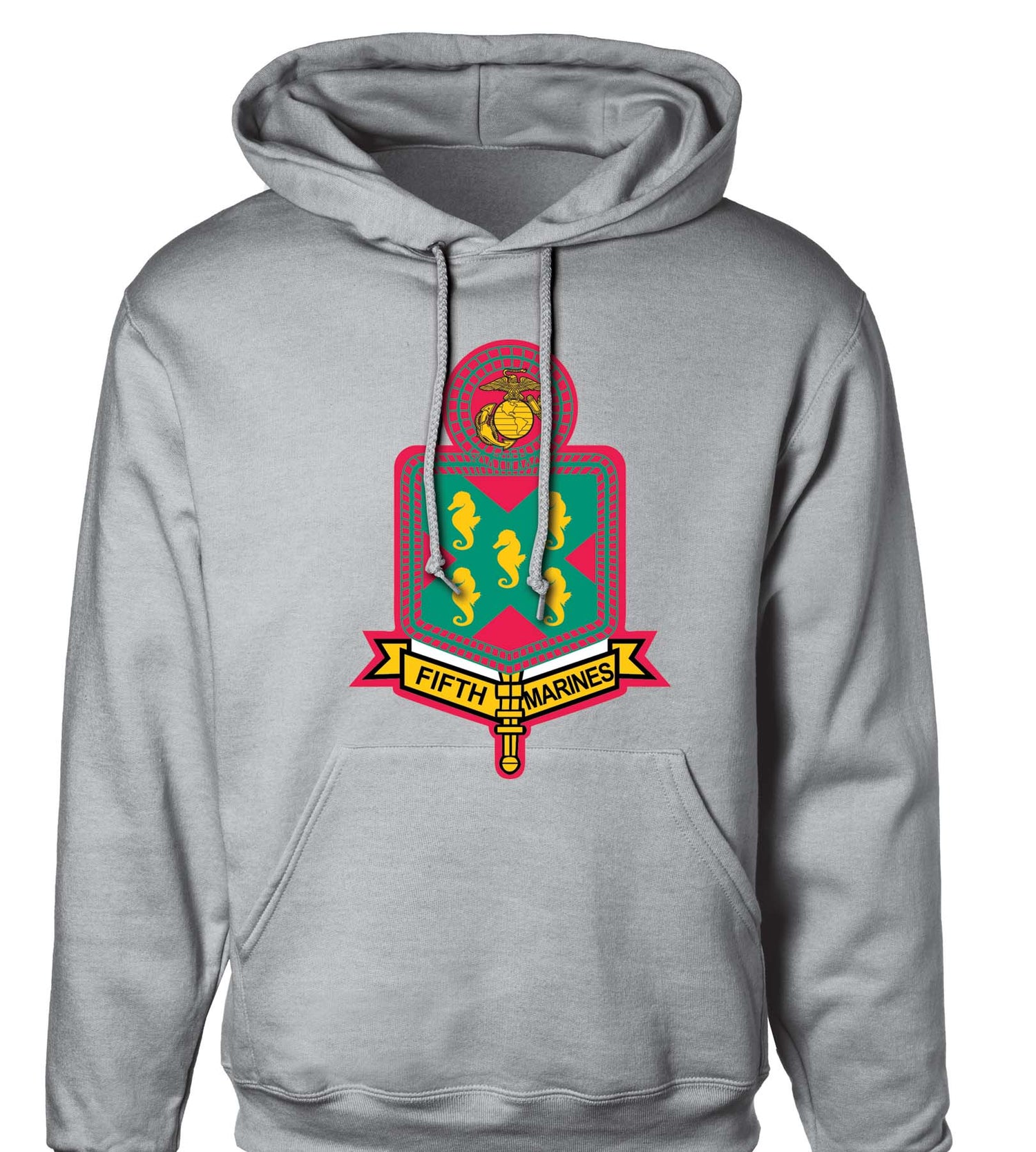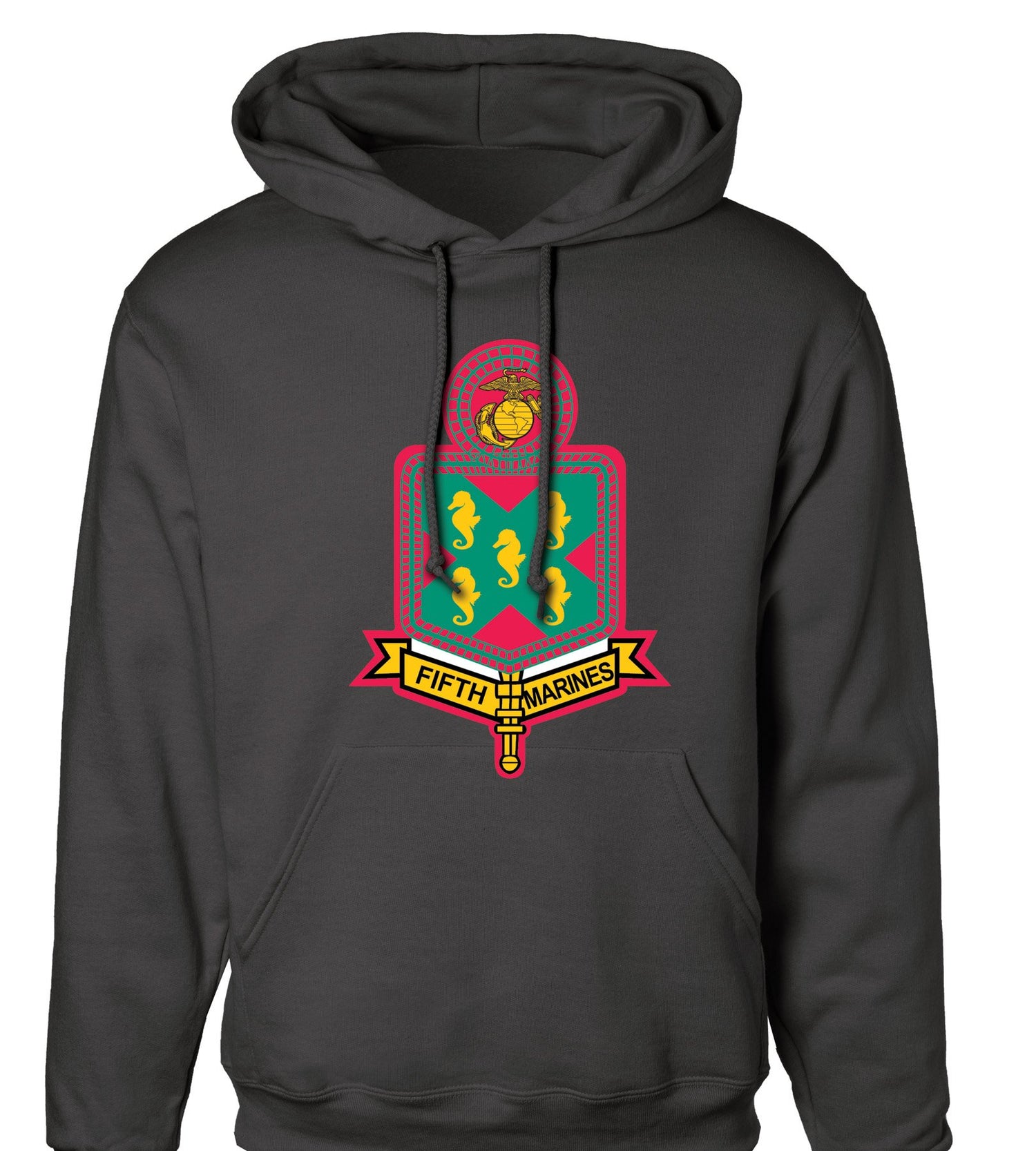 Continue to showcase your pride and dedication with this hoodie featuring the 5th Marines Regimental patch. This hoodie can be personalized to also include your location and year.