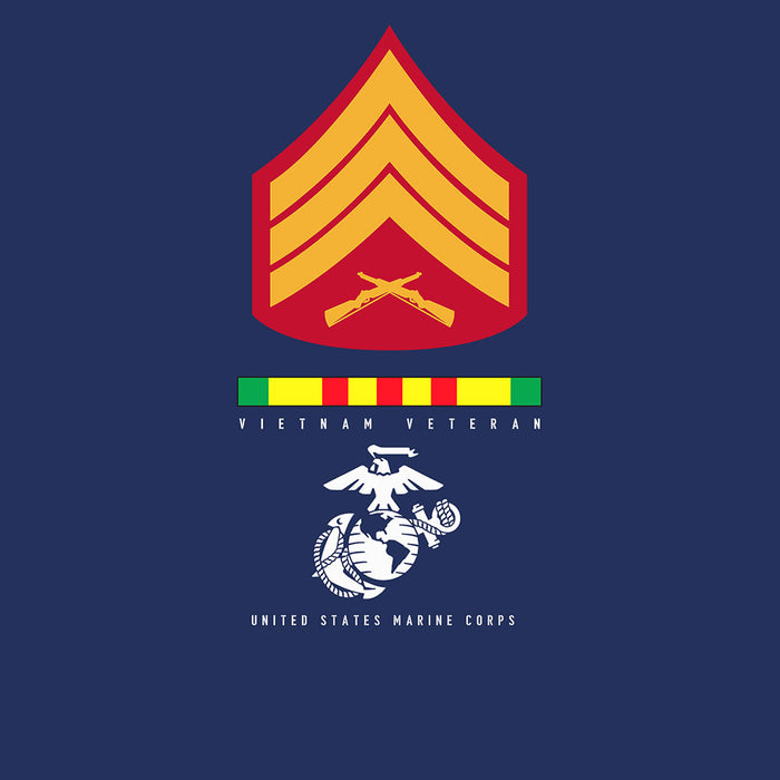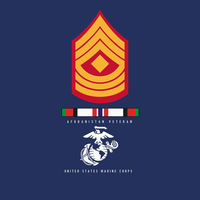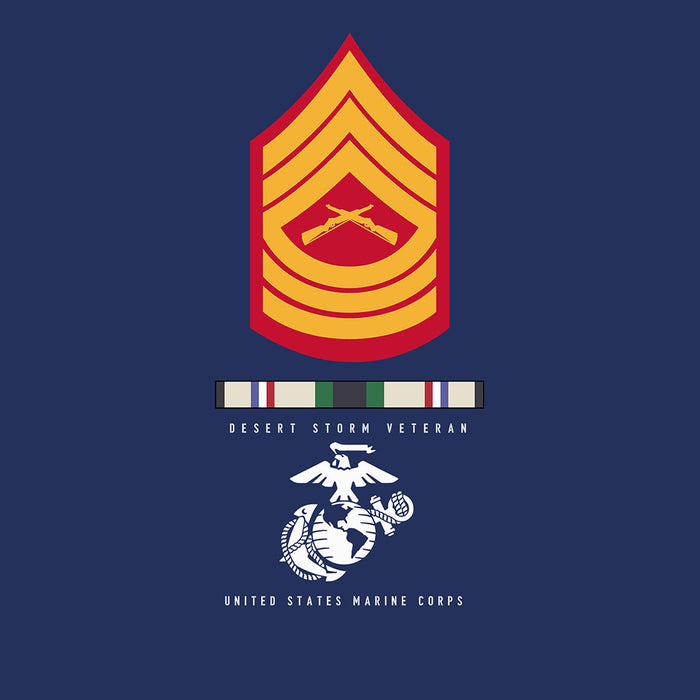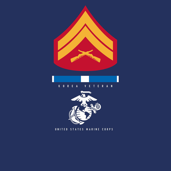 Wear this shirt loud and proud! This Choose Your Conflict and Rank - Dress Blues T-shirt features the Eagle Globe and Anchor that reads "Veteran United States Marine Corps". This shirt gives you the option of choosing a Vietnam Ribbon, Desert Storm Ribbon, Afghanistan Ribbon, Iraq Ribbon, or the Korea Ribbon and your choice of rank. Semper Fi!