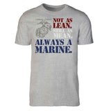 Your USMC collection won't truly be complete until you add this great Not As Lean Pocket T-shirt. On this shirt we've placed the sacred emblem of our beloved US Marine Corps and the words "Not As Lean, Still As Mean, Always A Marine".