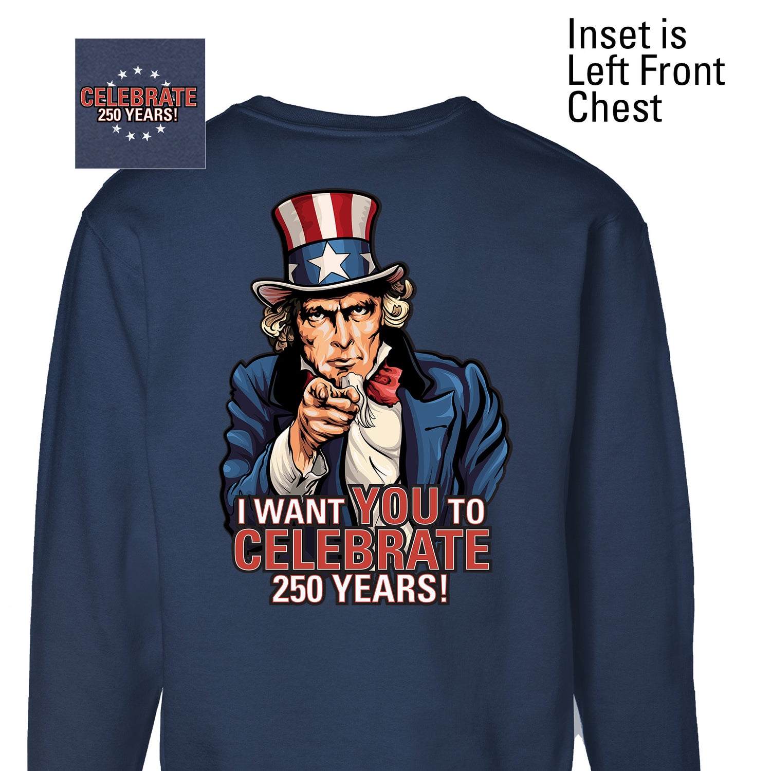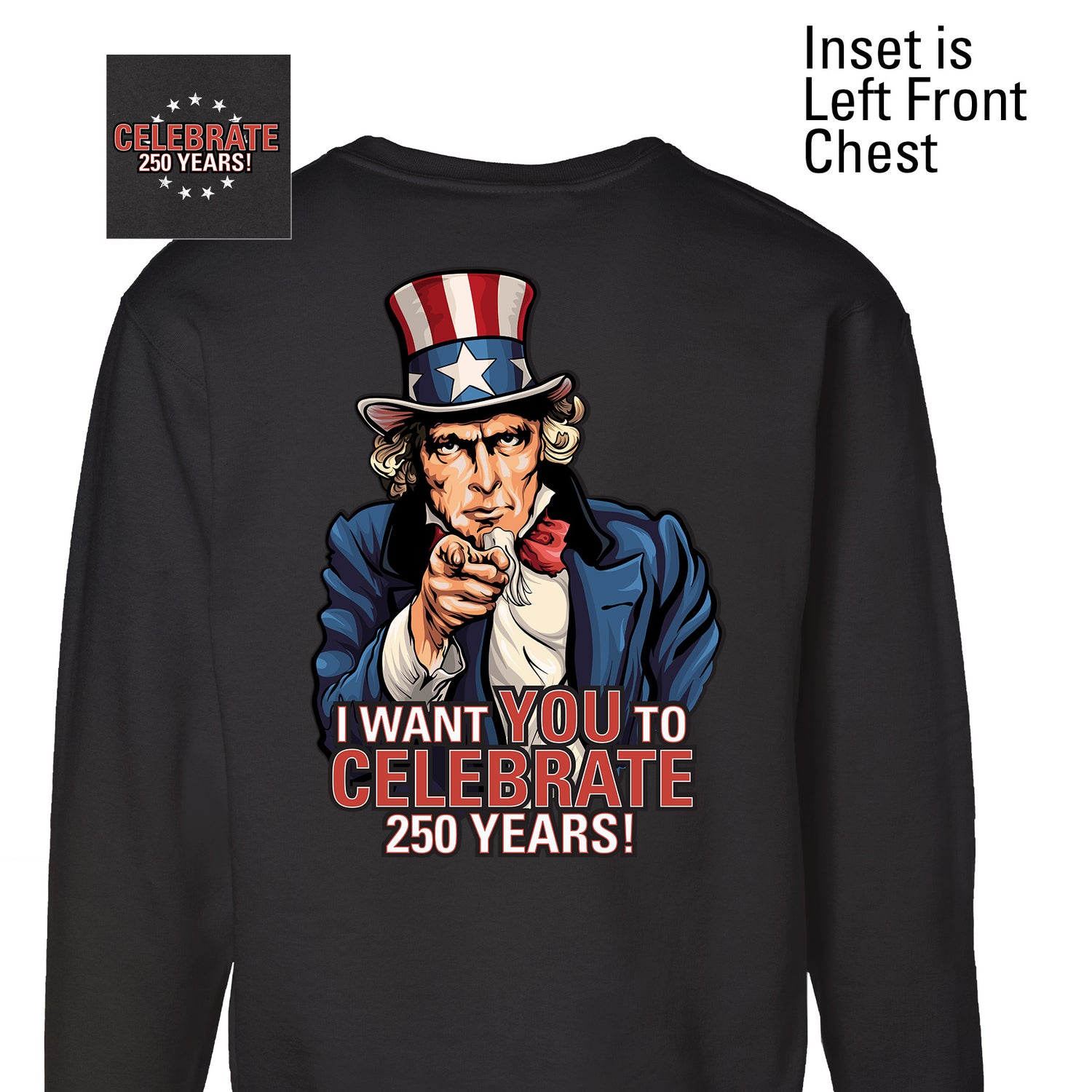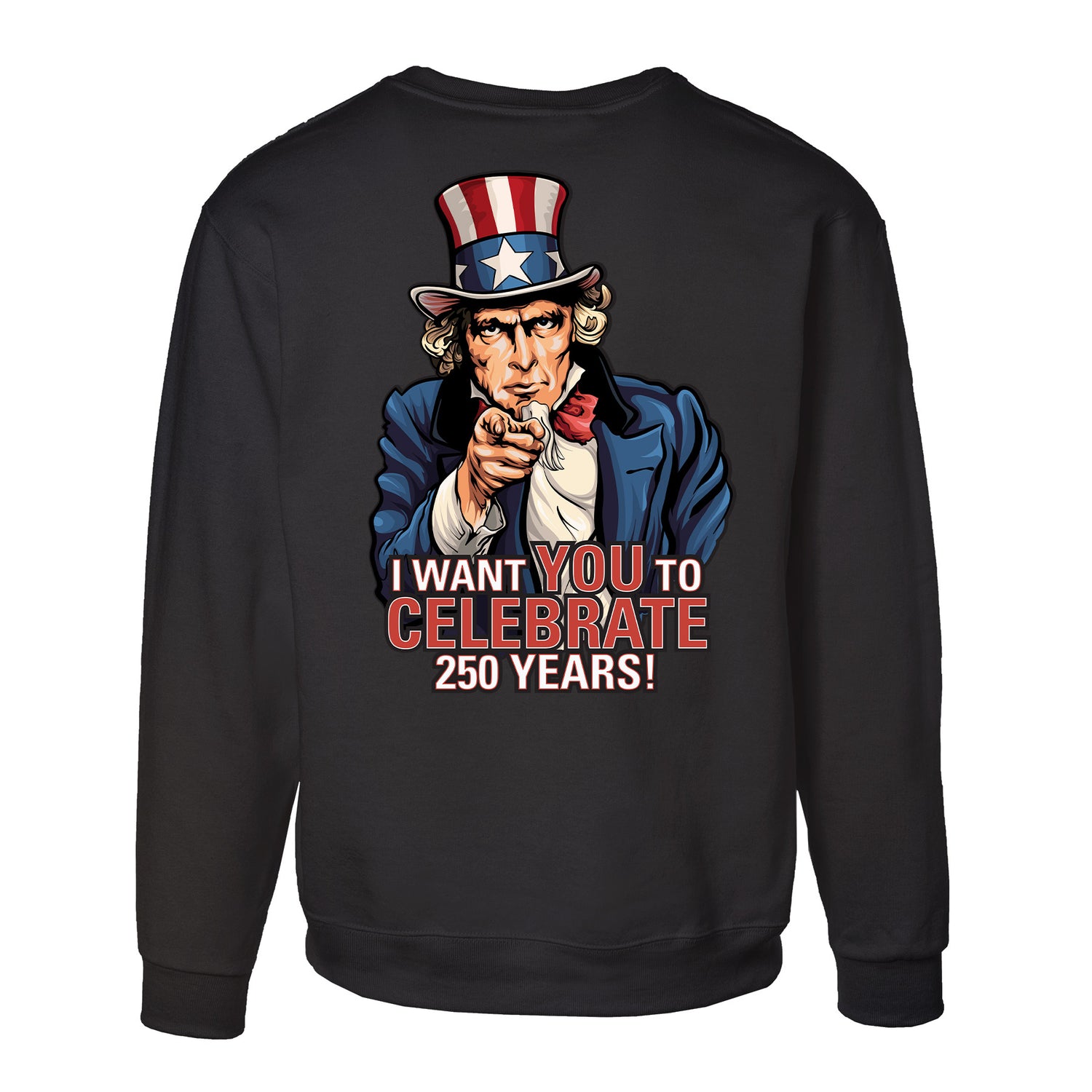 Celebrate freedom. Celebrate history. Order your "I Want You to Celebrate 250 Years" Sweatshirt - Back Design today.