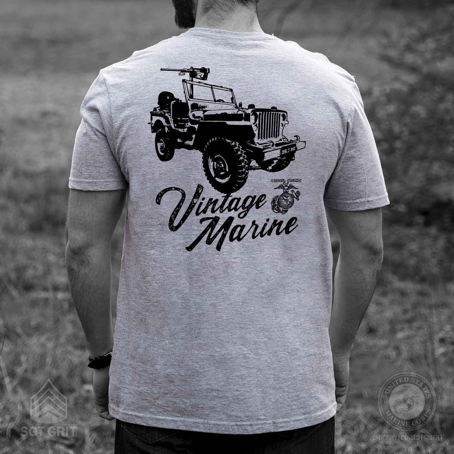 Embrace the rich legacy of the U.S. Marine Corps with our Vintage Marine Back With Front Pocket T-shirt. Made with a blend of 90% cotton and 10% polyester, this tee ensures optimal comfort while ensuring durability. The chest pocket prominently features the iconic Eagle, Globe, and Anchor emblem, a timeless symbol of Marine pride. Turn it around to reveal the back's standout design: an old school military jeep accompanied by the statement "Vintage Marine". A perfect blend of history and style, this shirt is not only a nod to Marine tradition but also a testament to timeless fashion.