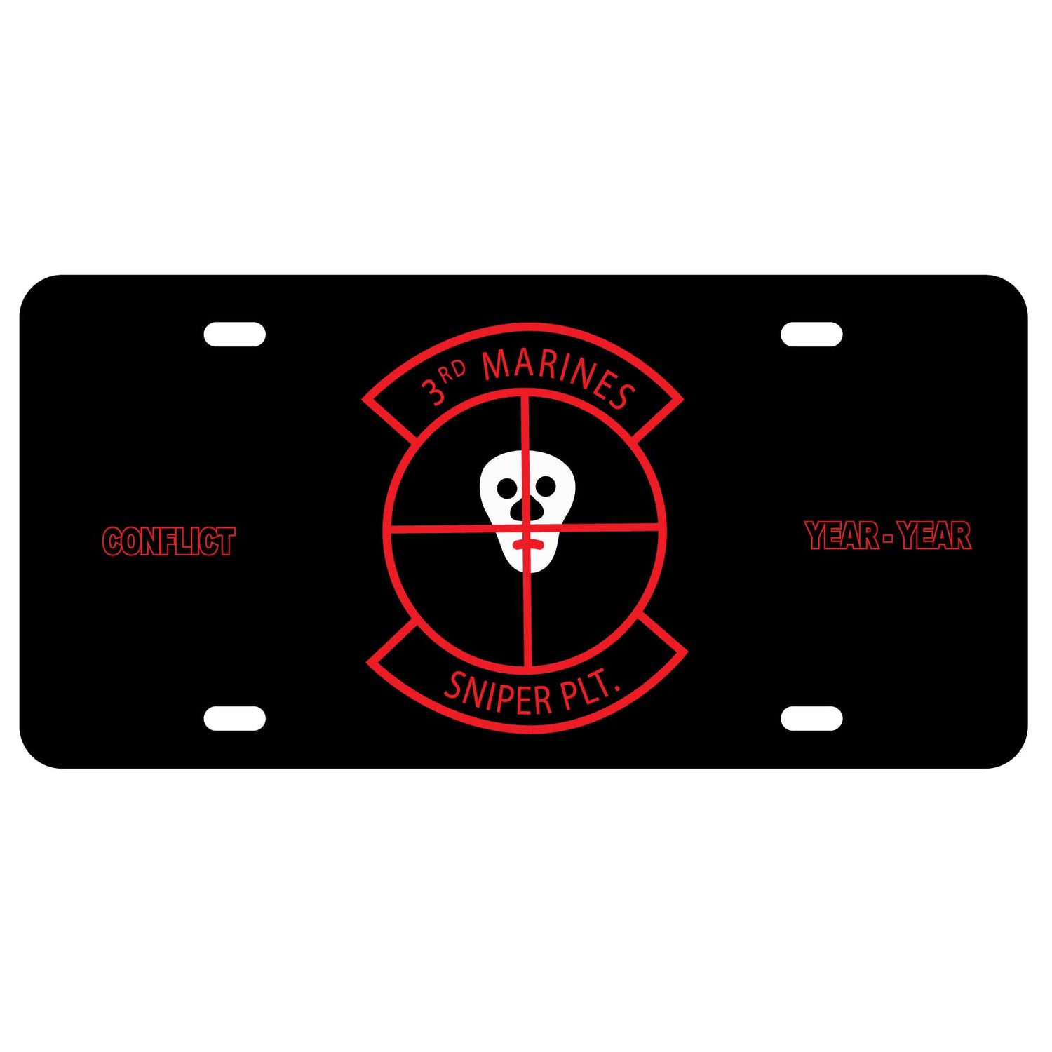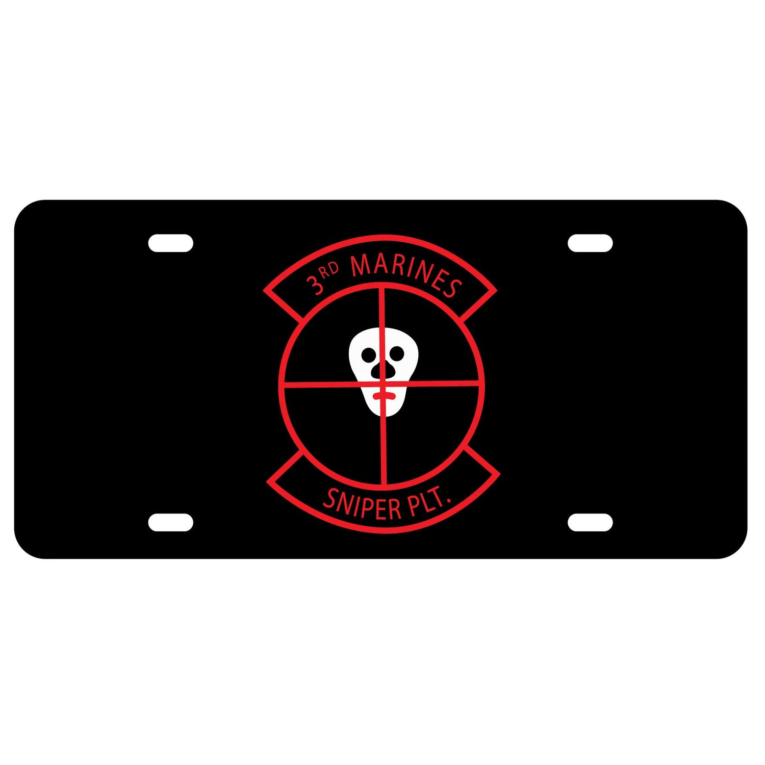License plate featuring the 3rd Marines Sniper Platoon patch art.