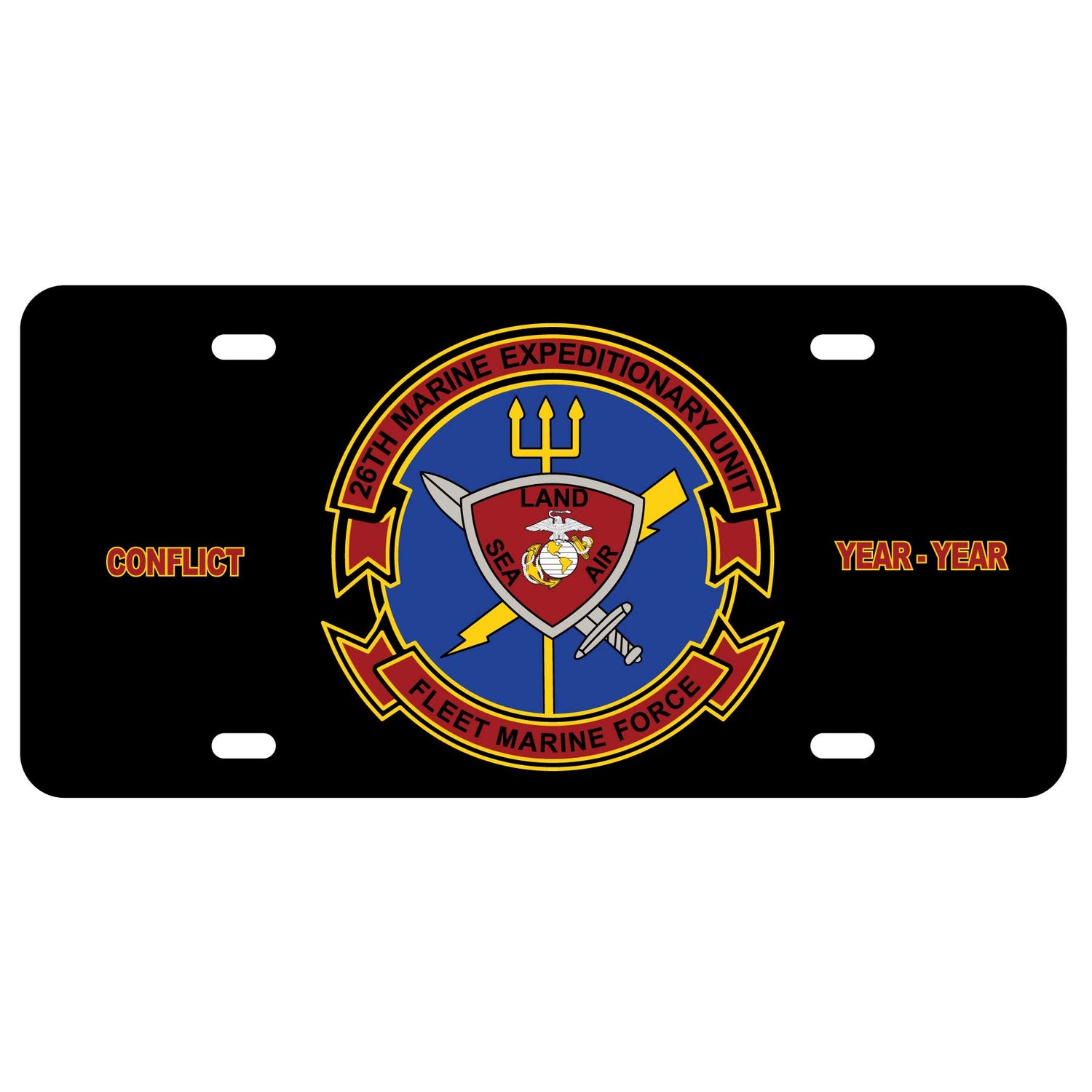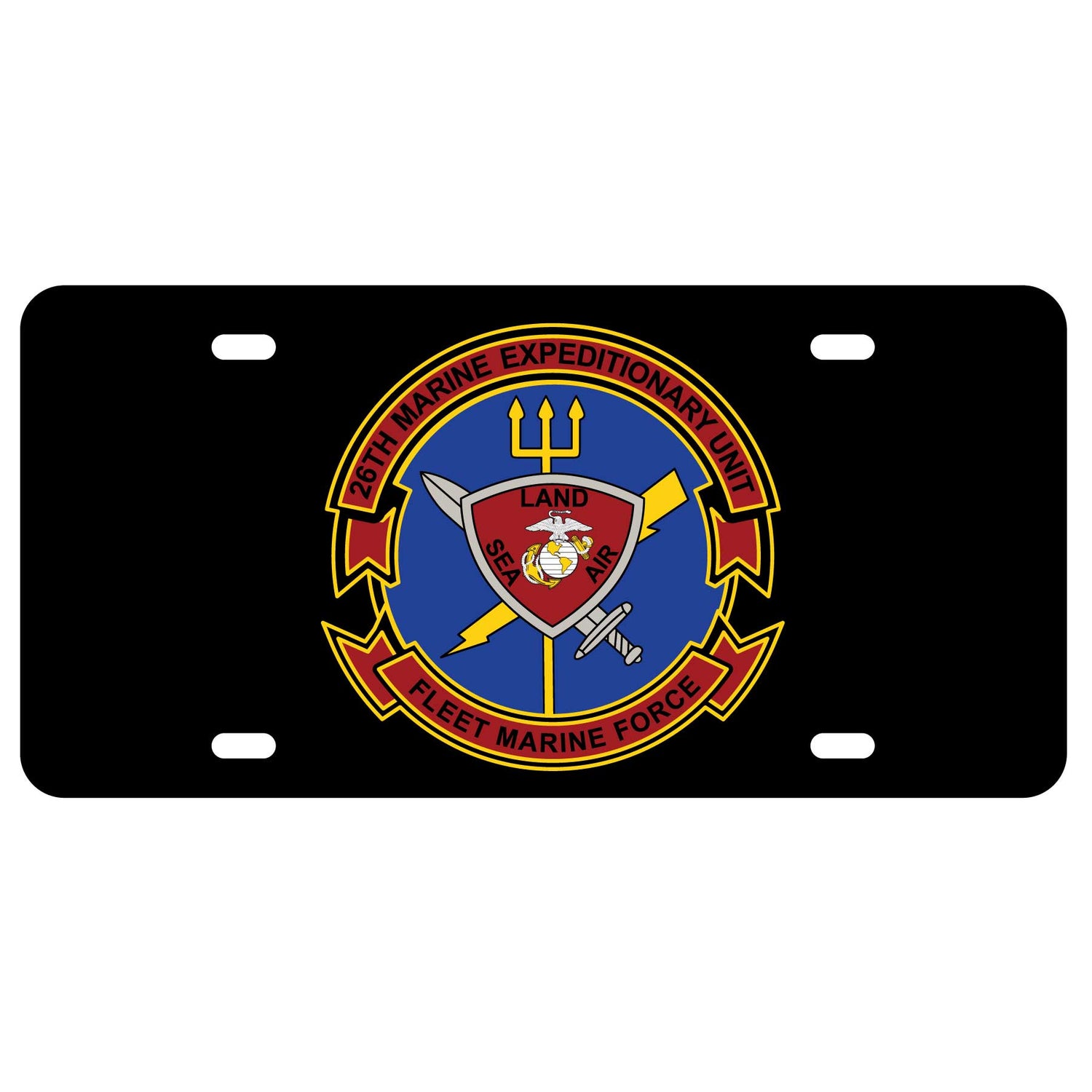 License plate featuring the 26th Marines Expeditionary Unit FMF patch art.