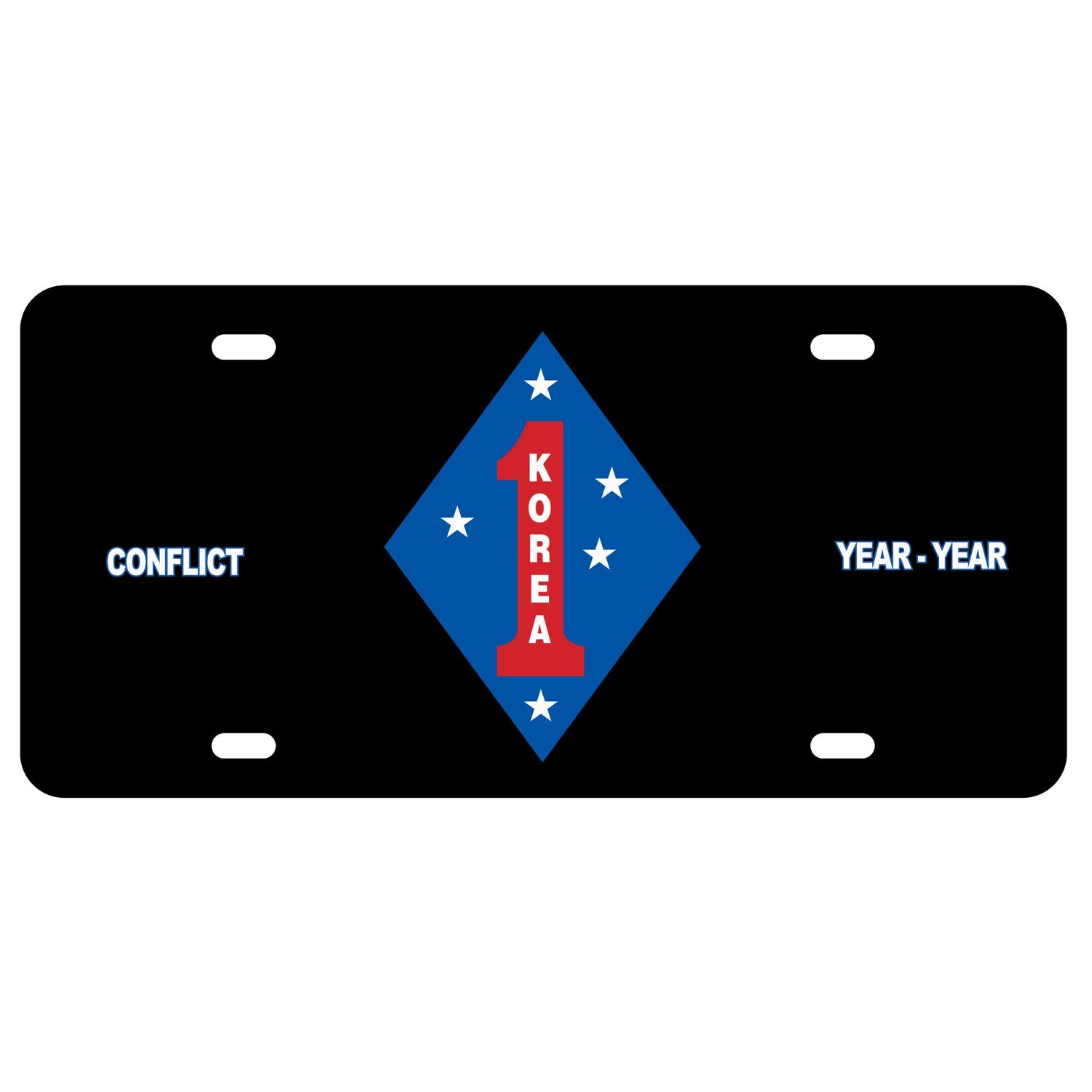 License plate featuring the Korea 1st Marine Division patch art.