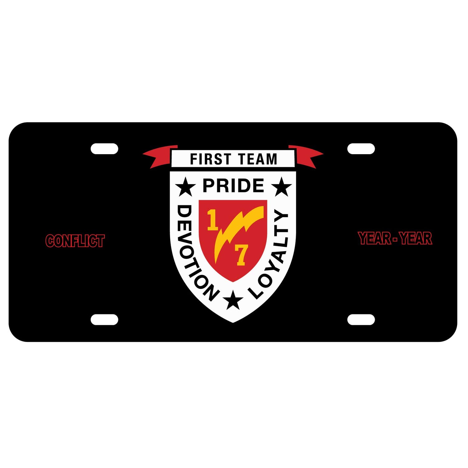 License plate featuring the 1st Battalion 7th Marines patch art.