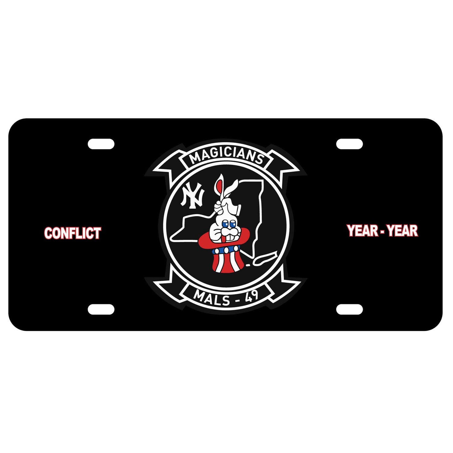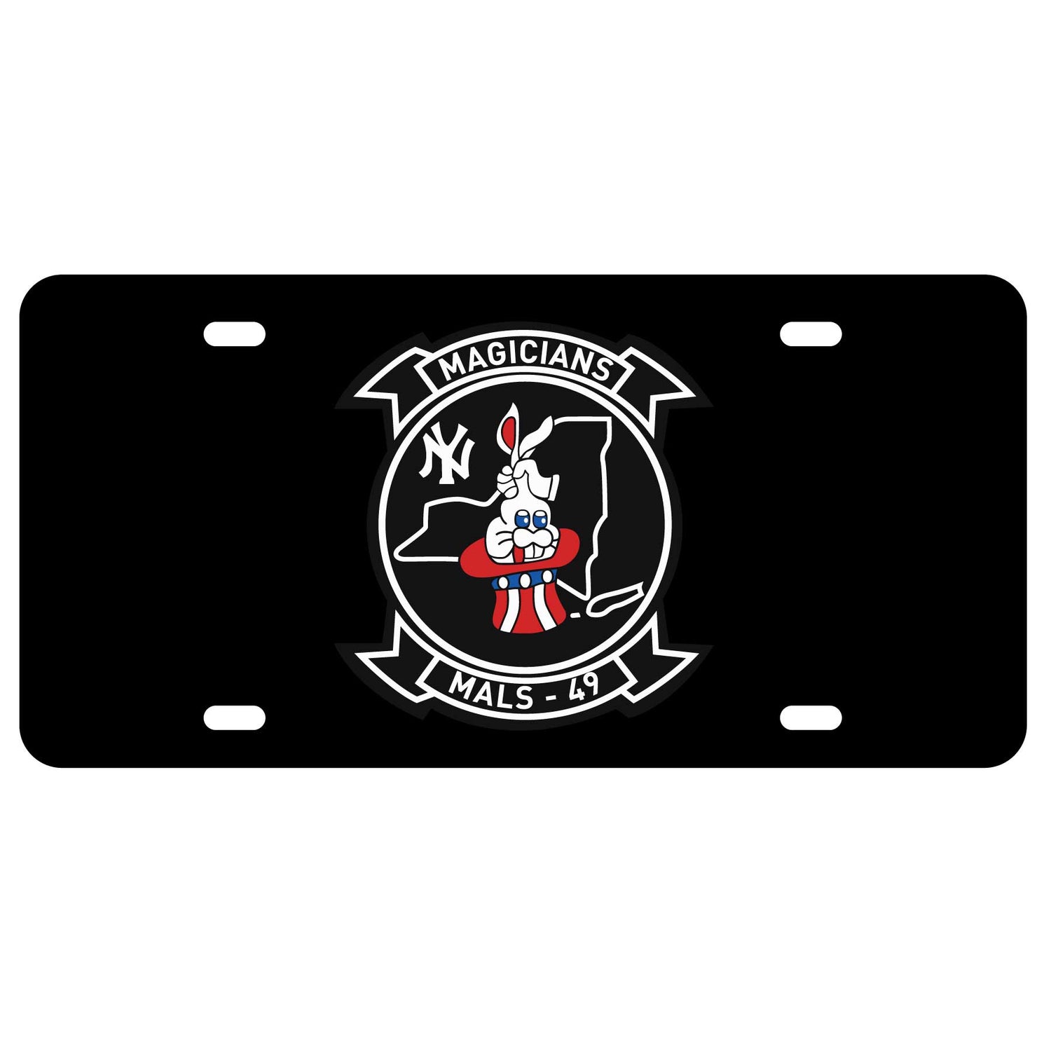 License plate featuring the MALS-49 patch art.