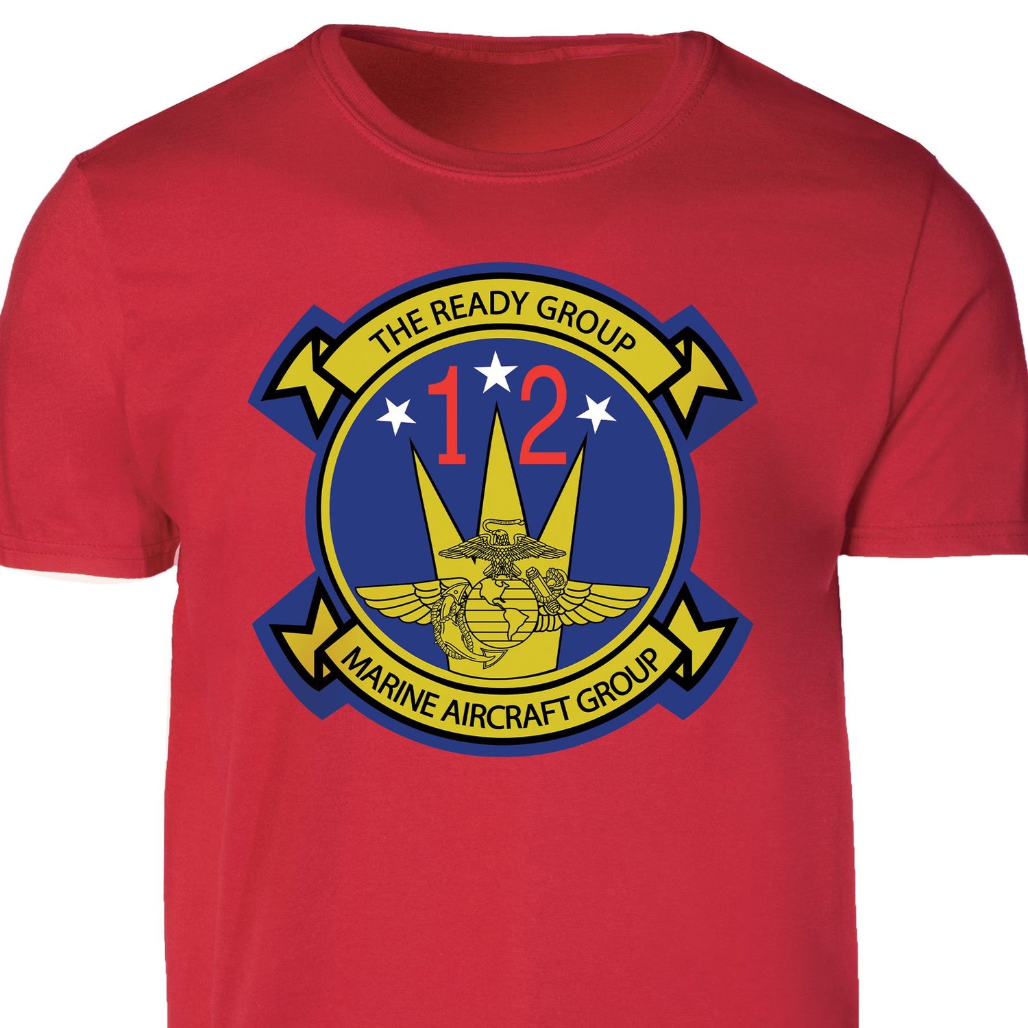 Your USMC collection won't truly be complete until you add this great T-shirt. This t-shirt features the MAG-12 patch that can be personalized with your location and year.