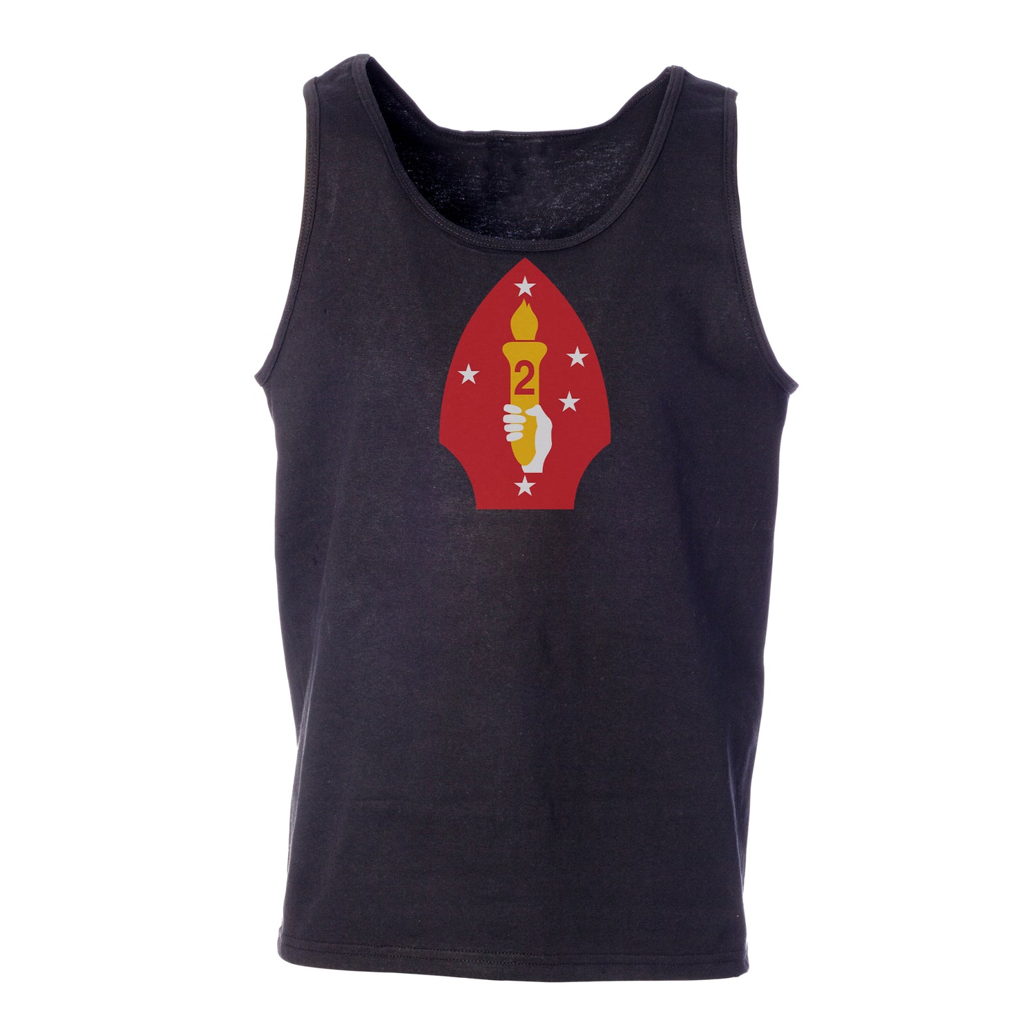 Your USMC collection won't truly be complete until you add this great Tank Top. This shirt features the 2nd Marine Division patch and can be personalized with your location and year.