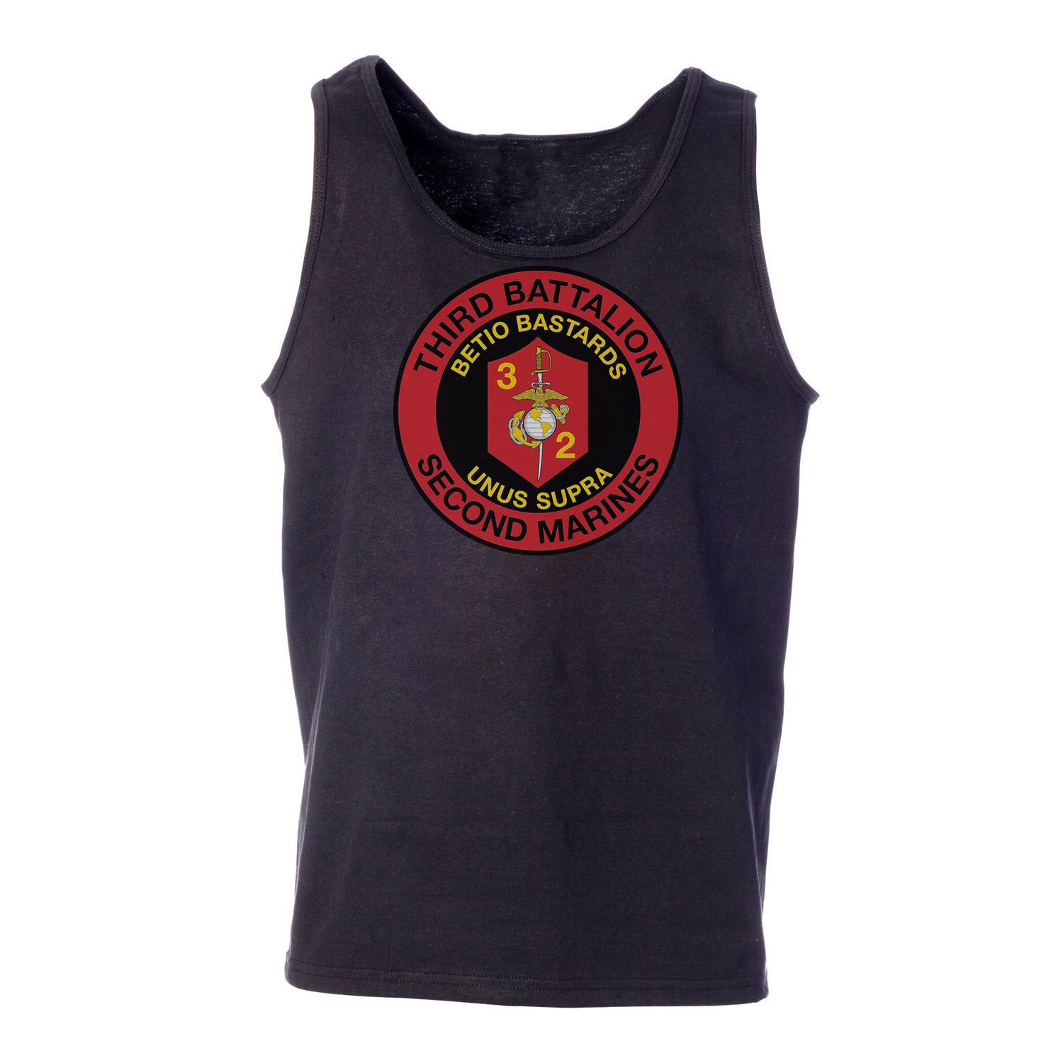 Your USMC collection won't truly be complete until you add this great Tank Top. This shirt features the 3rd Battalion 2nd Marines patch and can be personalized with your location and year.