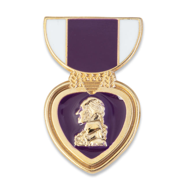 The enameled metal Purple Heart pin, awarded in the military to those wounded or killed in battle, is now available at SGT GRIT. The 1-in. long pin has George Washington's raised profile on a purple heart beneath Washington's family coat of arms. We're also your source for Purple Heart ribbon pins.