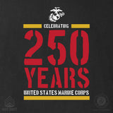 Celebrate Marine Corps history with the USMC Celebrating 250 Years Hoodie. The design honors the 250th Birthday of the United States Marine Corps, featuring "Celebrating 250 Years," "United States Marine Corps," and the iconic Eagle, Globe, and Anchor emblem proudly displayed on the chest.