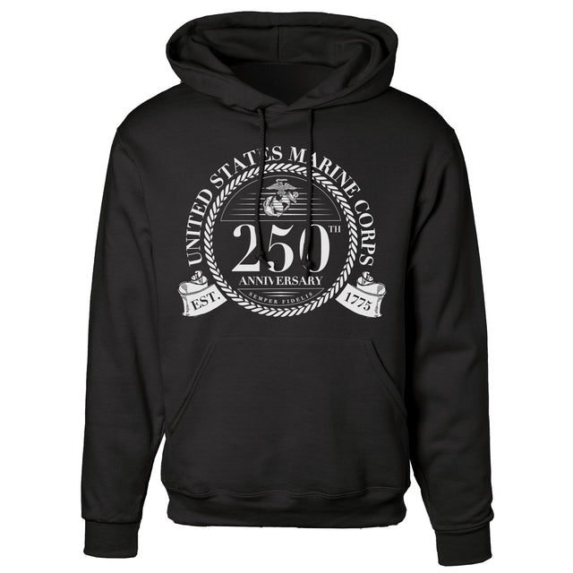 Celebrate 250 years of Marine Corps excellence with the USMC 250th Anniversary Formal Hoodie. The distinguished design honors the 250th Birthday of the United States Marine Corps, proudly featuring "United States Marine Corps," "250th Anniversary," and the iconic Eagle, Globe, and Anchor emblem across the chest.