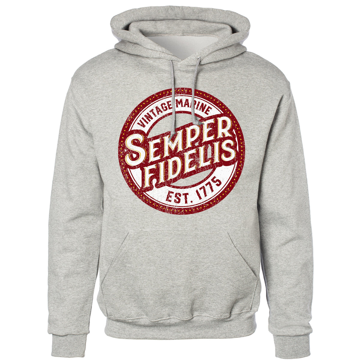 Showcase your commitment to the Corps with timeless style in the Semper Fidelis Vintage Marine Hoodie. This officially licensed U.S. Marine Corps product features a clean, bold design that proudly displays "Semper Fidelis" and "Vintage Marine", honoring the enduring spirit of the USMC. Made from a comfortable 50% cotton, 50% polyester blend, this piece offers a soft, breathable fit that’s perfect for everyday wear, workouts, or laid-back weekends.