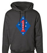 Continue to showcase your pride and dedication with this hoodie featuring the Korea - 1st Marine Division patch. This hoodie can be personalized to also include your location and year.