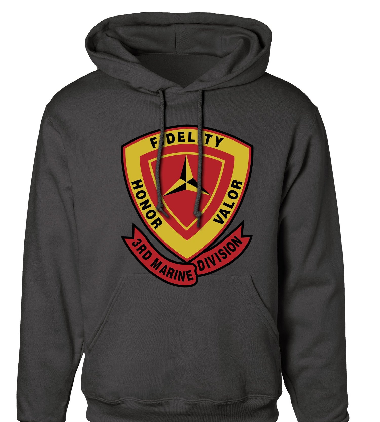 Continue to showcase your pride and dedication with this hoodie featuring the 3rd Marine Division patch. This hoodie can be personalized to also include your location and year.