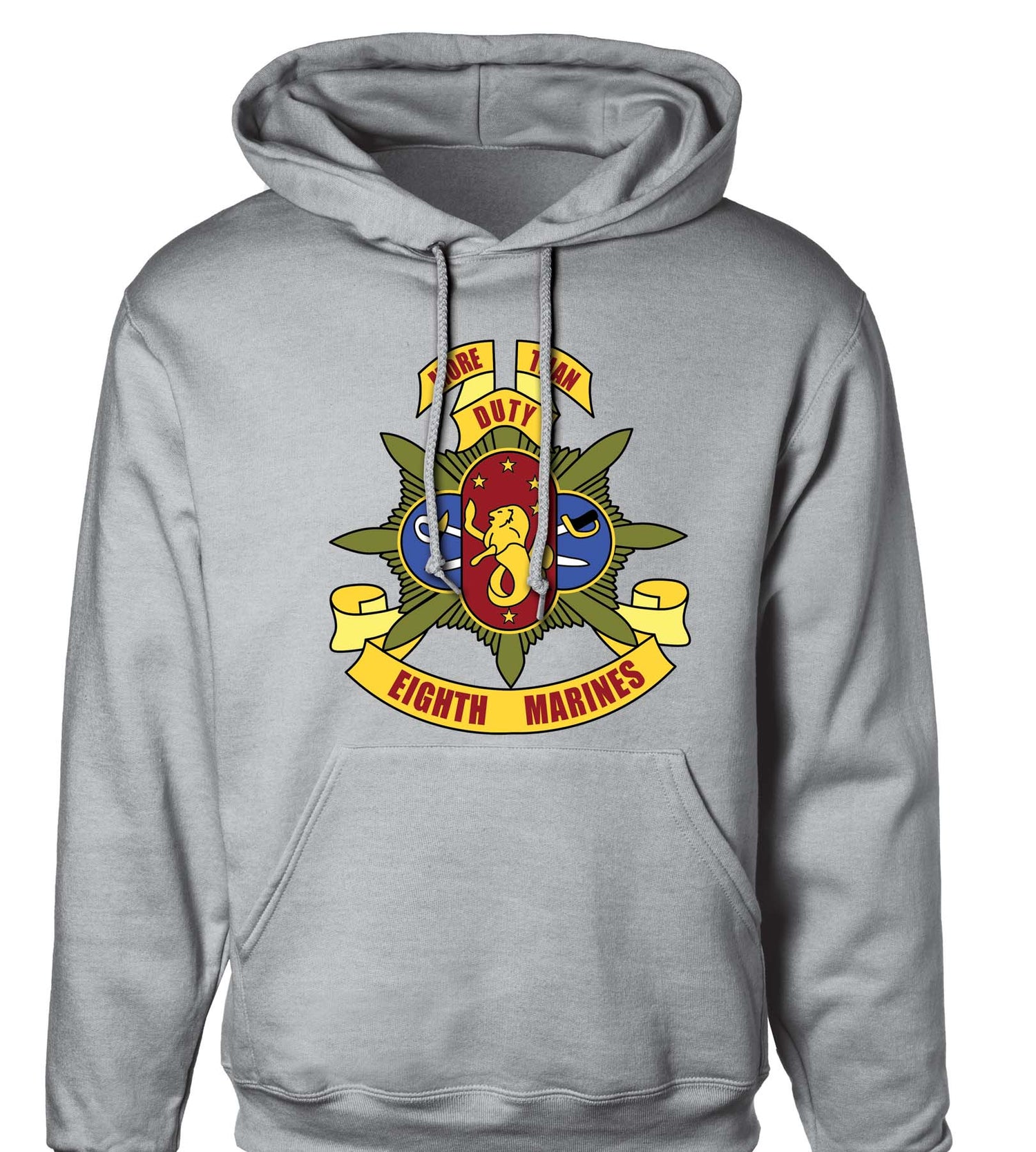 Continue to showcase your pride and dedication with this hoodie featuring the 8th Marines Regimental patch. This hoodie can be personalized to also include your location and year.
