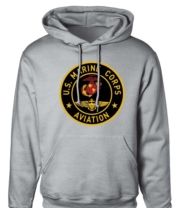 Continue to showcase your pride and dedication with this hoodie featuring the Marine Corps Aviation patch. This hoodie can be personalized to also include your location and year.