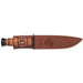 This classic USMC straight edge knife features a rock solid 420 stainless steel fixed blade with a heat treated black finish. The 7" clip point blade is razor sharp and includes a heavy blood groove. The genuine leather handle is stacked just like the classic knives traditionally carried by Marines, complete with a protective hand guard and cast pommel. This top quality fixed blade knife comes to you with a handsome embossed leather sheath.