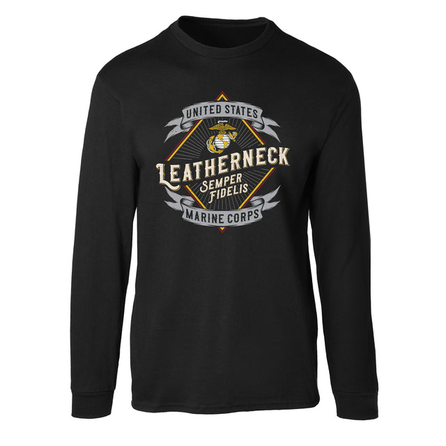 Proudly display your Marine Corps heritage with the Leatherneck Diamond Long Sleeve Shirt from SGT GRIT. This officially licensed United States Marine Corps shirt features a bold diamond-shaped design with the words "Leatherneck," "Semper Fidelis," and "United States Marine Corps" prominently printed across the chest. Made from 100% premium cotton, this USMC shirt offers a soft, breathable fit perfect for daily wear, training, or off-duty relaxation. Whether you're an active-duty Marine, a proud veteran, or searching for meaningful gifts for Marines, this shirt delivers a clean, classic look with deep-rooted pride.