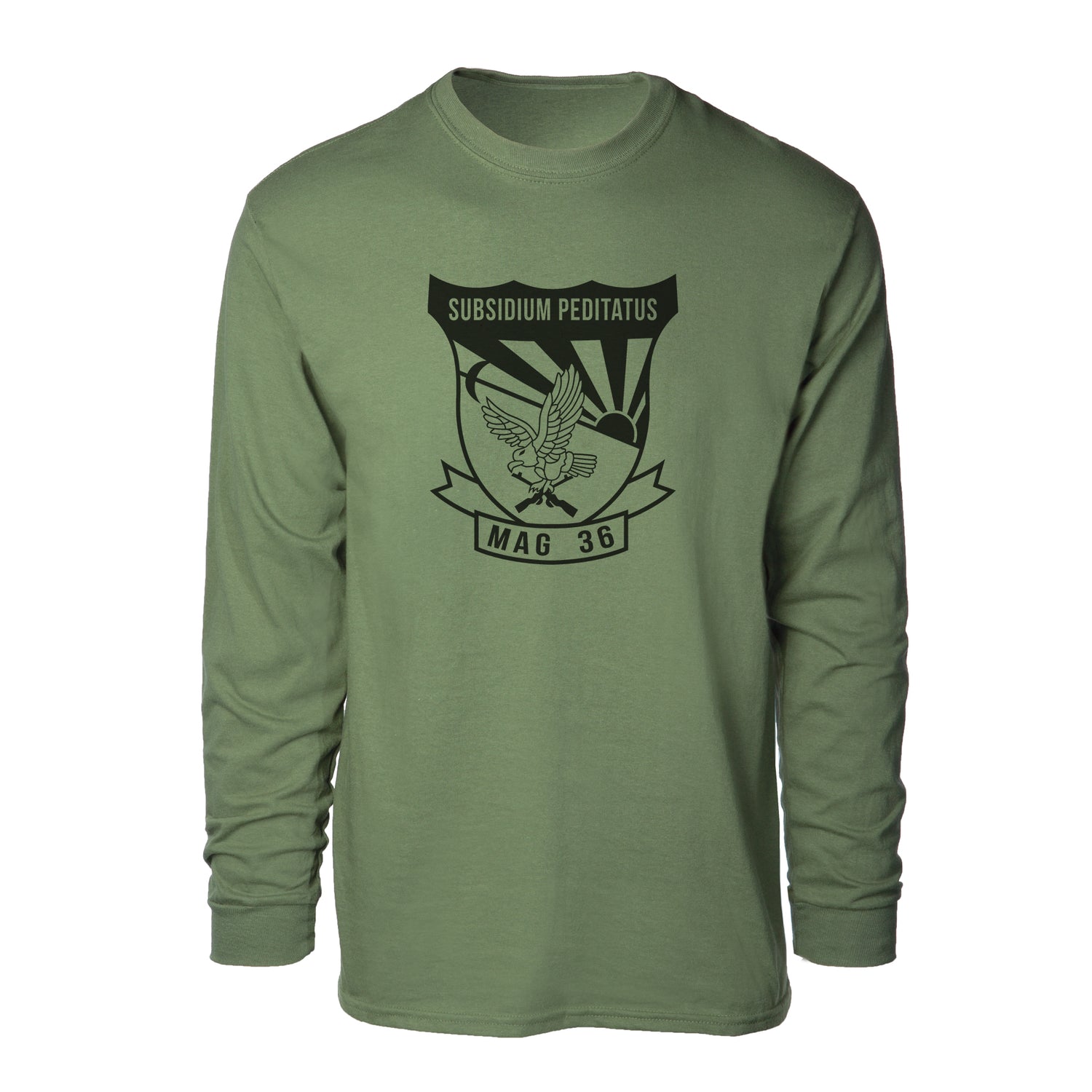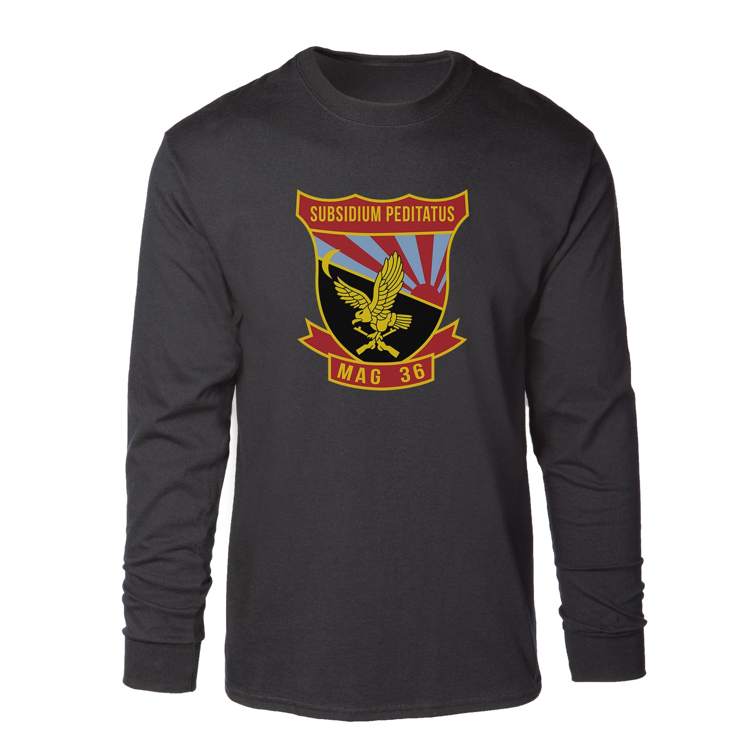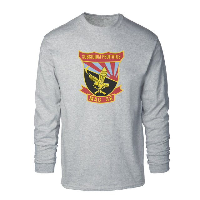 Your USMC collection won't truly be complete until you add this great Long Sleeve T-shirt. This t-shirt features the MAG-36 patch and can be personalized with your location and year.